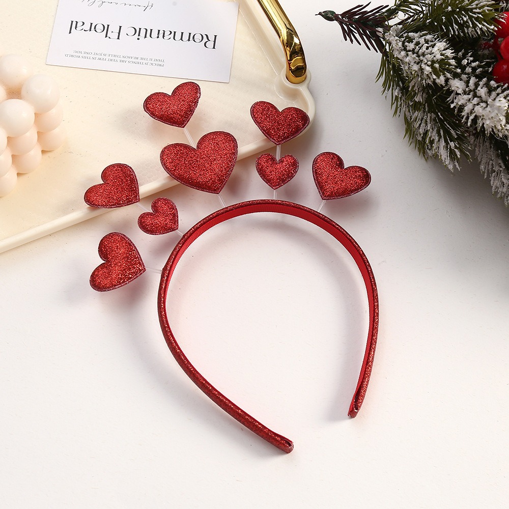 バレンタインデーの愛のヘアバンド、スパンコールの桃のハートのヘアバンド、新年の贈り物、クリスマス、子供の誕生日パーティーの装飾用ヘッドドレス