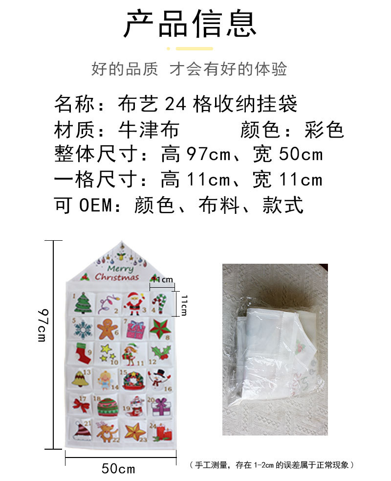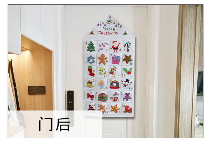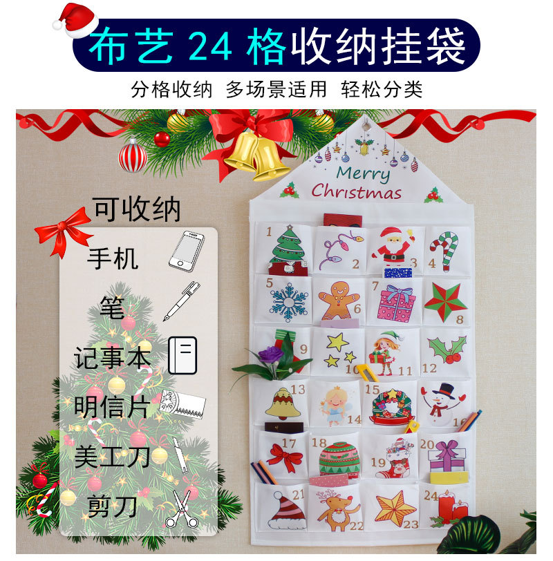 跨境圣诞节24格收纳挂袋墙挂式门宿床头收纳袋可折叠袜子储物挂袋
