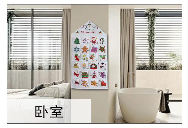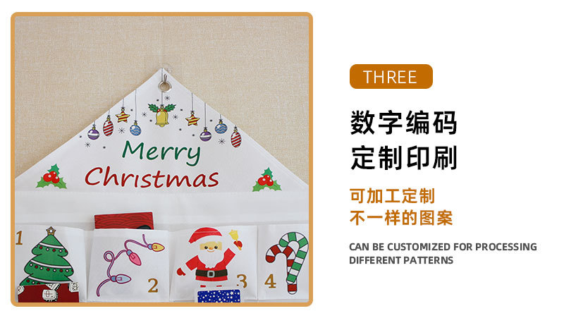跨境2025新款圣诞降临节日历布料悬挂袋圣诞收纳袋圣诞装饰品挂历