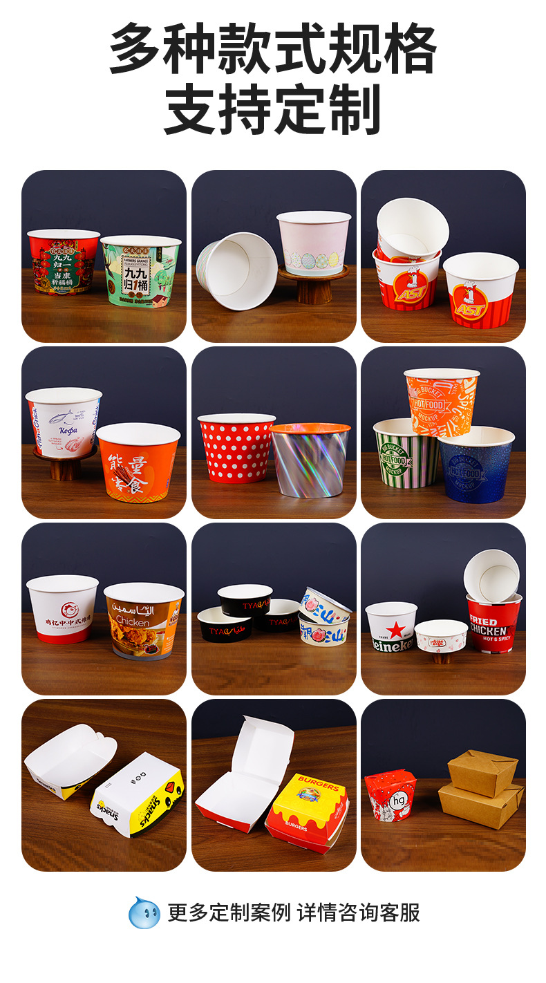 現物は使い捨ての紙碗の広告宣伝のロゴを厚くして、フライドチキンの桶のスープの碗を包んで蓋の弁当箱を持って注文します。