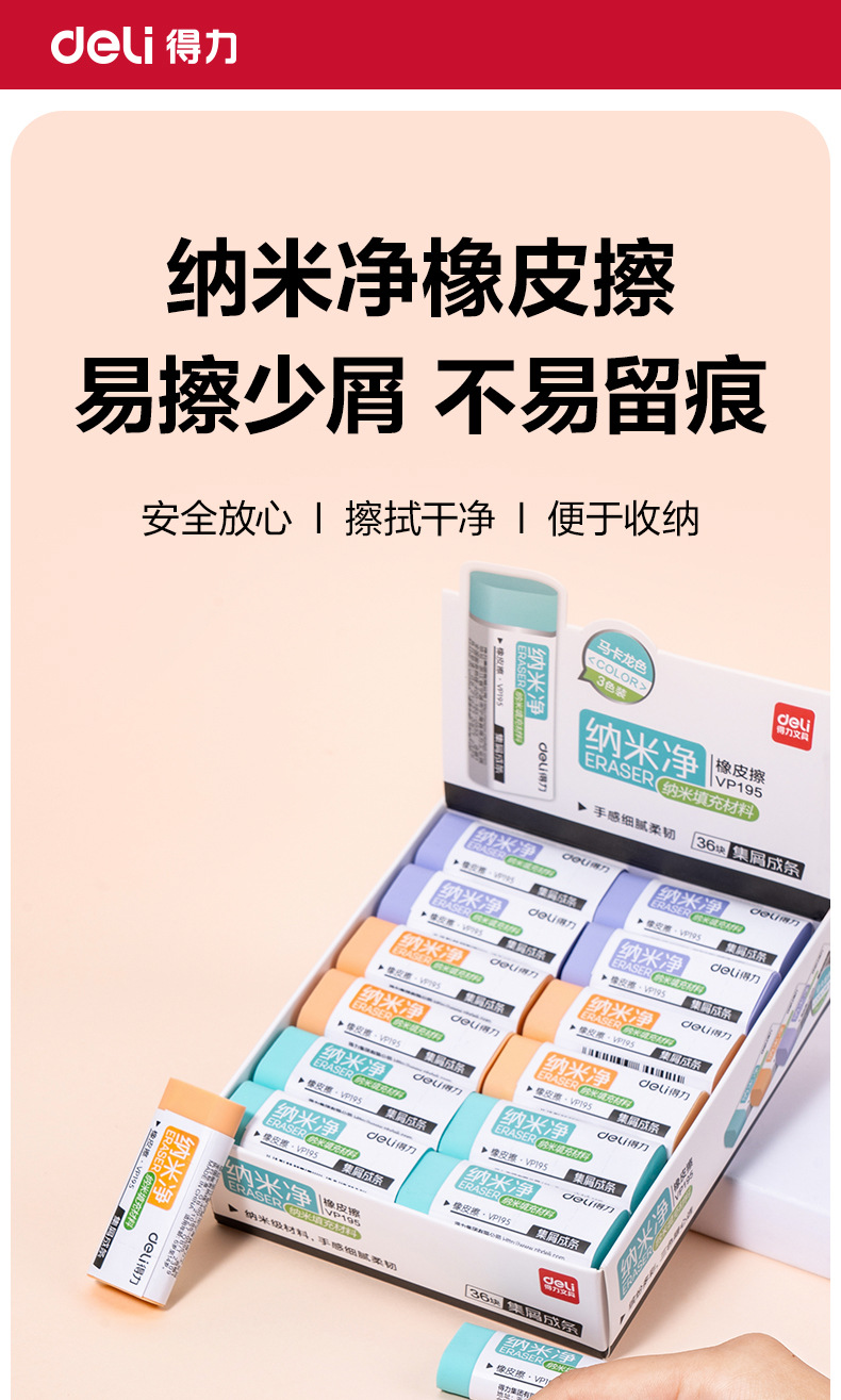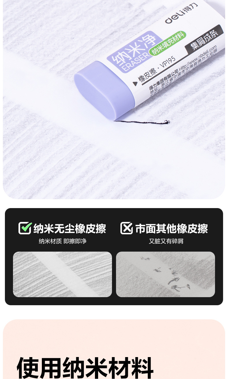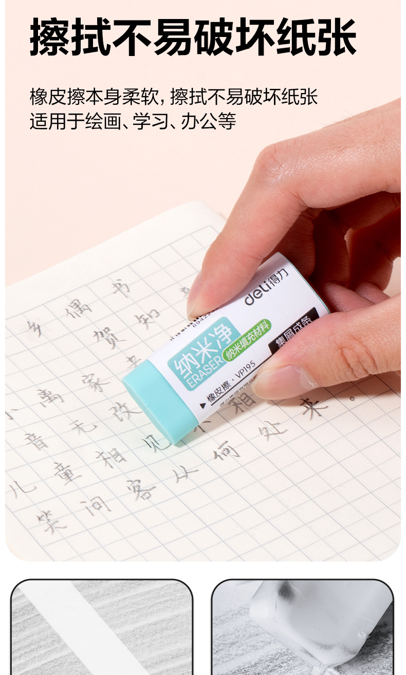 得力vp 194/vp 195ナノネット消しゴムマカロン色消しゴム小学生用は跡を残しにくいです。