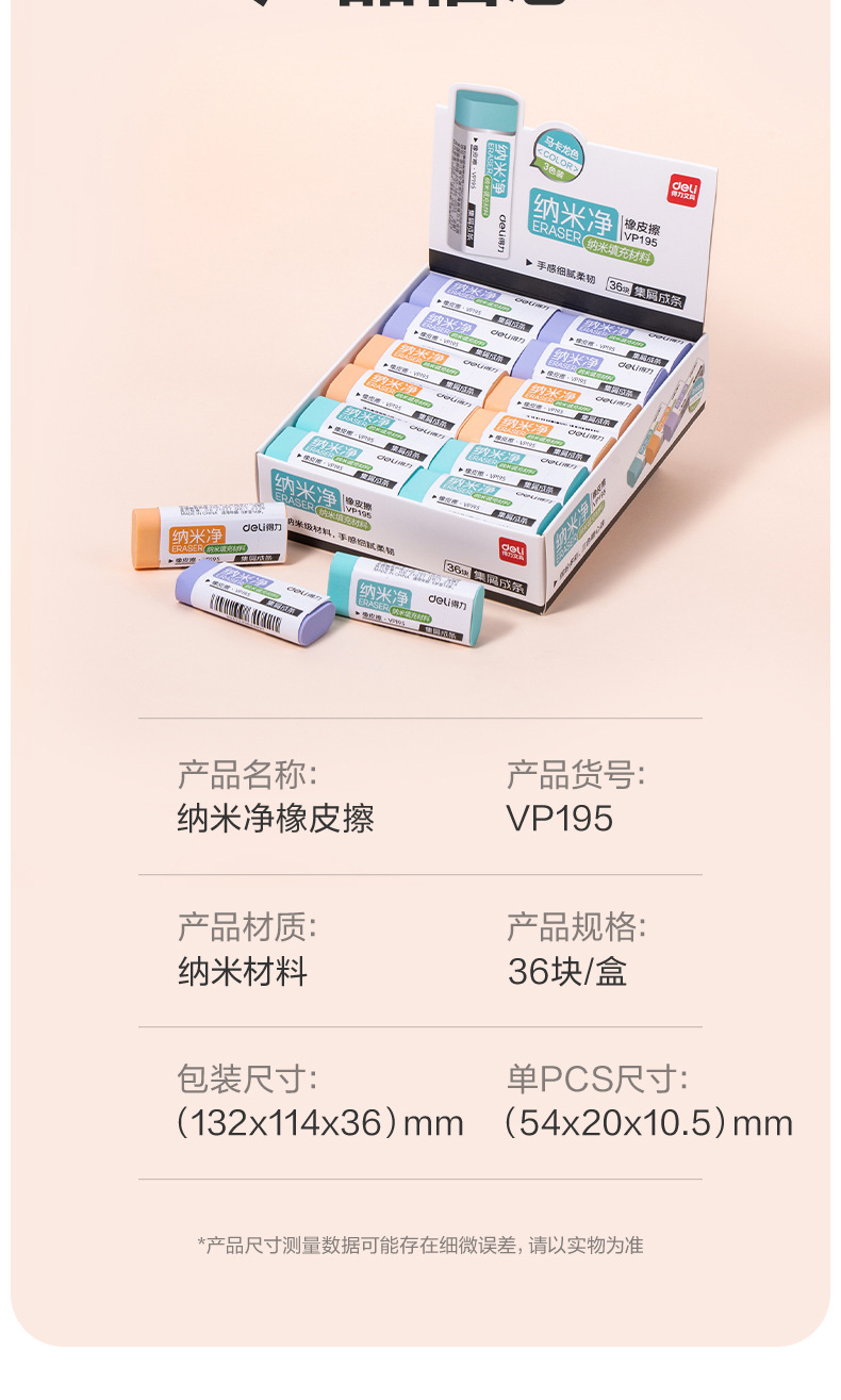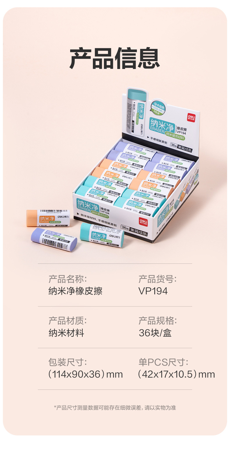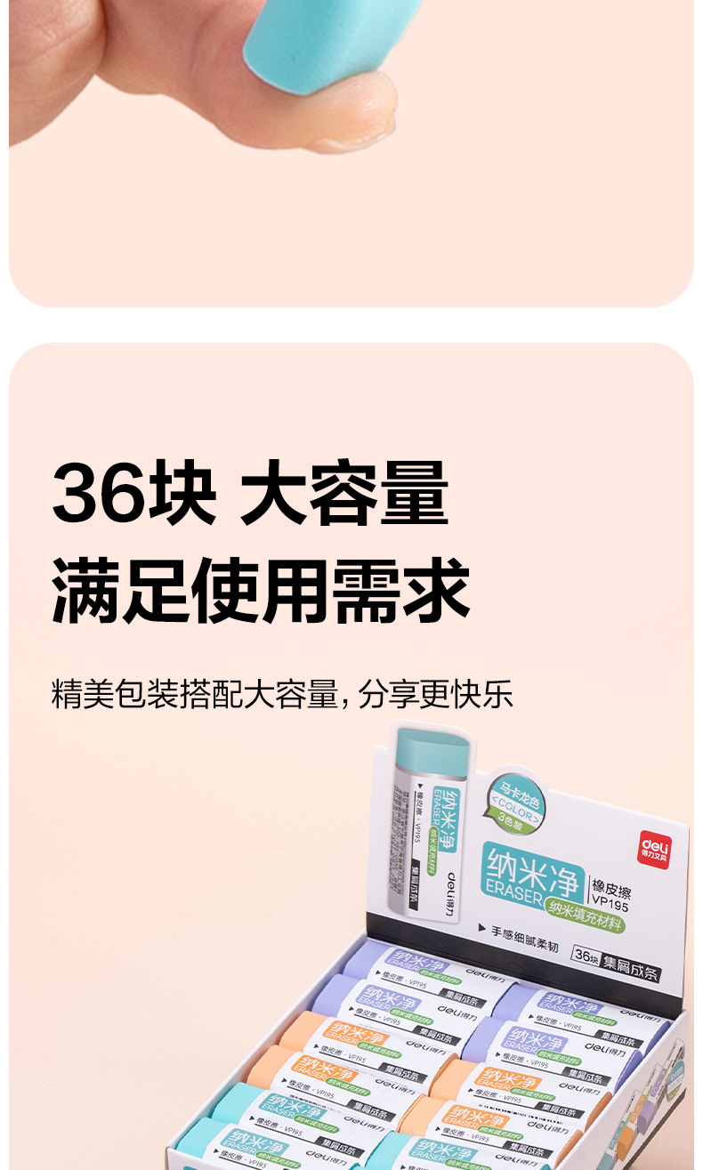 得力vp 194/vp 195ナノネット消しゴムマカロン色消しゴム小学生用は跡を残しにくいです。