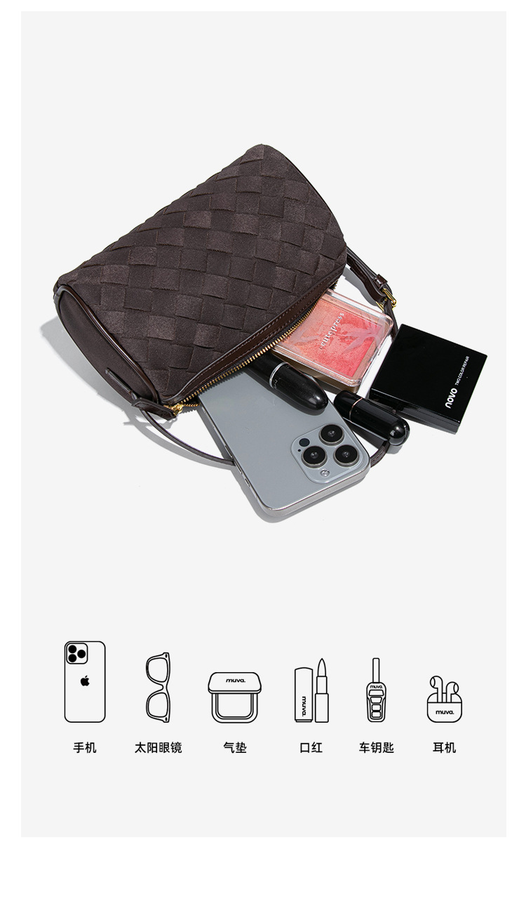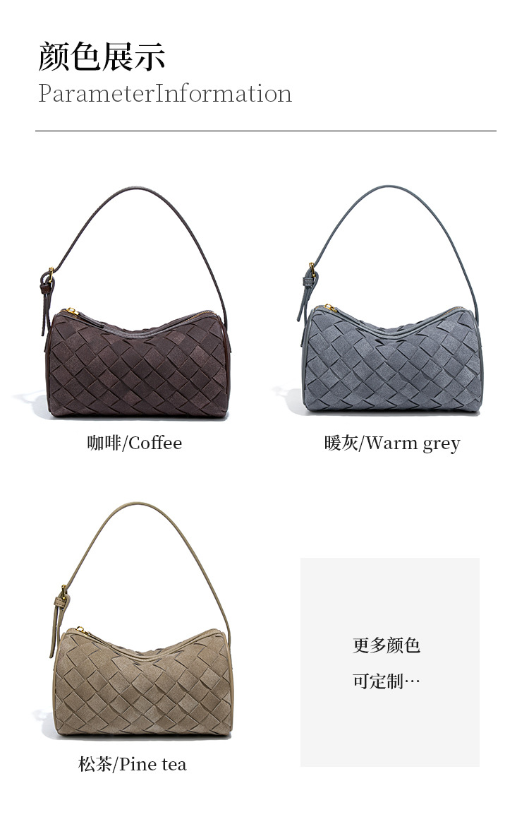 高級感大容量バッグ女性編みバッグ片肩斜めショルダー脇下バッグバケツバッグ研磨材スエード革トートバッグ