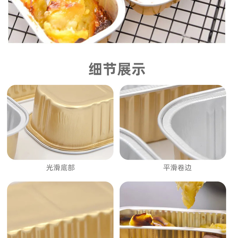 芝士焗红薯烤榴莲锡纸盒空气炸锅专用金色长方形一次性铝箔打包碗
