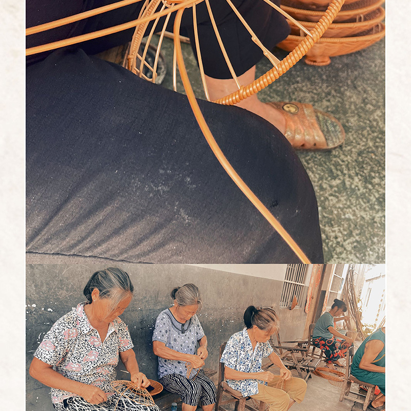 藤の果物の皿に似せて手作業で日本式のパンかごを編みます。