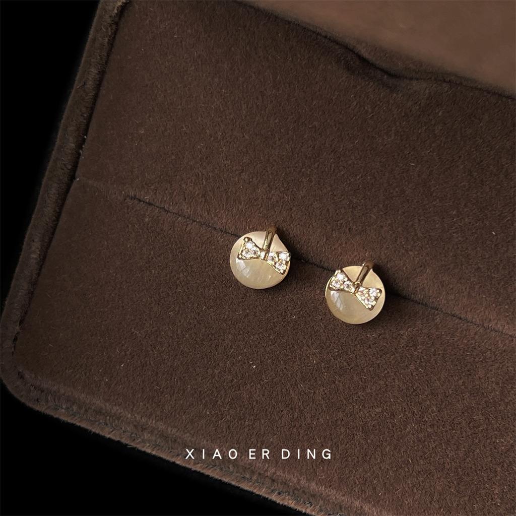 フランス通勤ガラス猫眼石優しい気質ミニピアスファッション