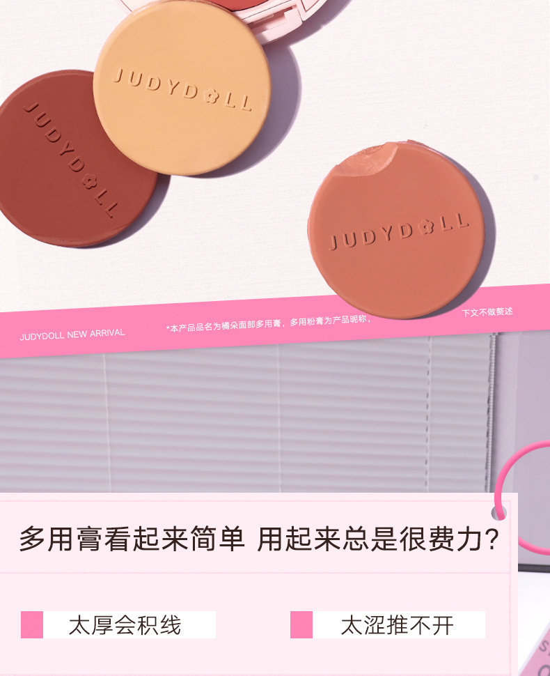 Judydoll橘朵光感腮红膏多用膏高光膨胀色彩妆多用盘空气感膏体女