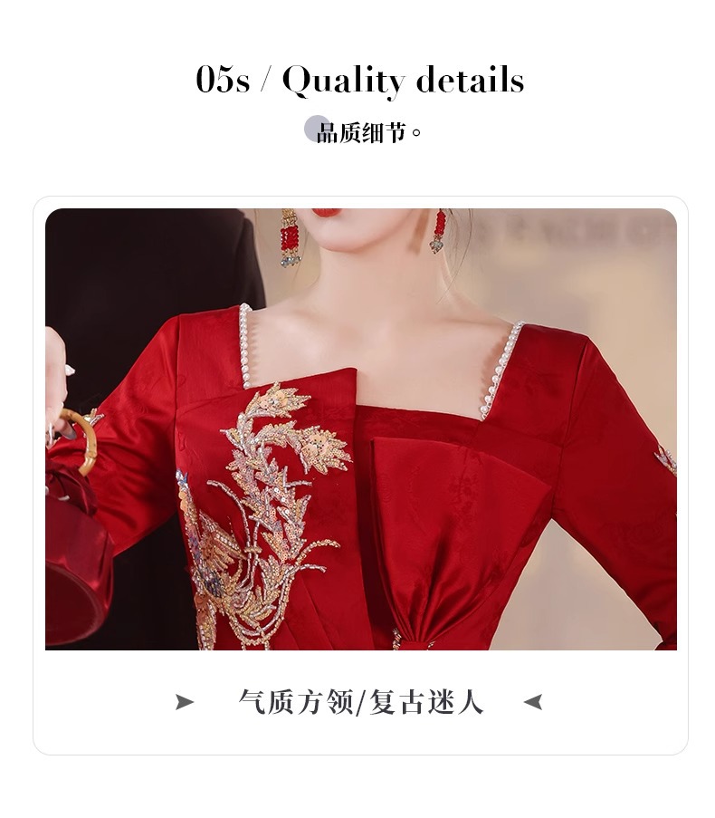 冬の高級感のある赤いウェディングドレス、新婦の乾杯用ドレス、帰省式、婚約式用ドレス、新中式長袖ドレス