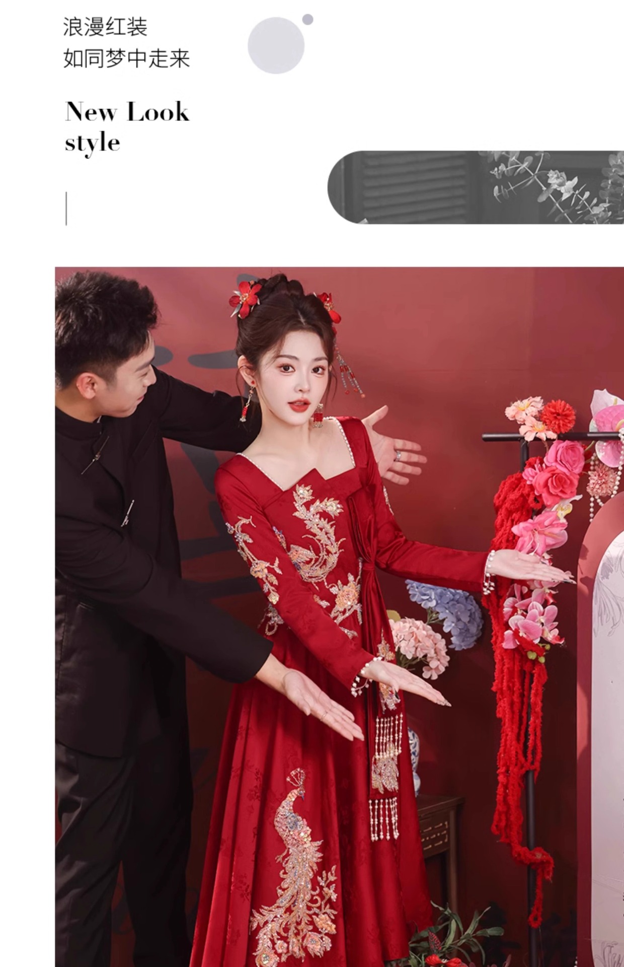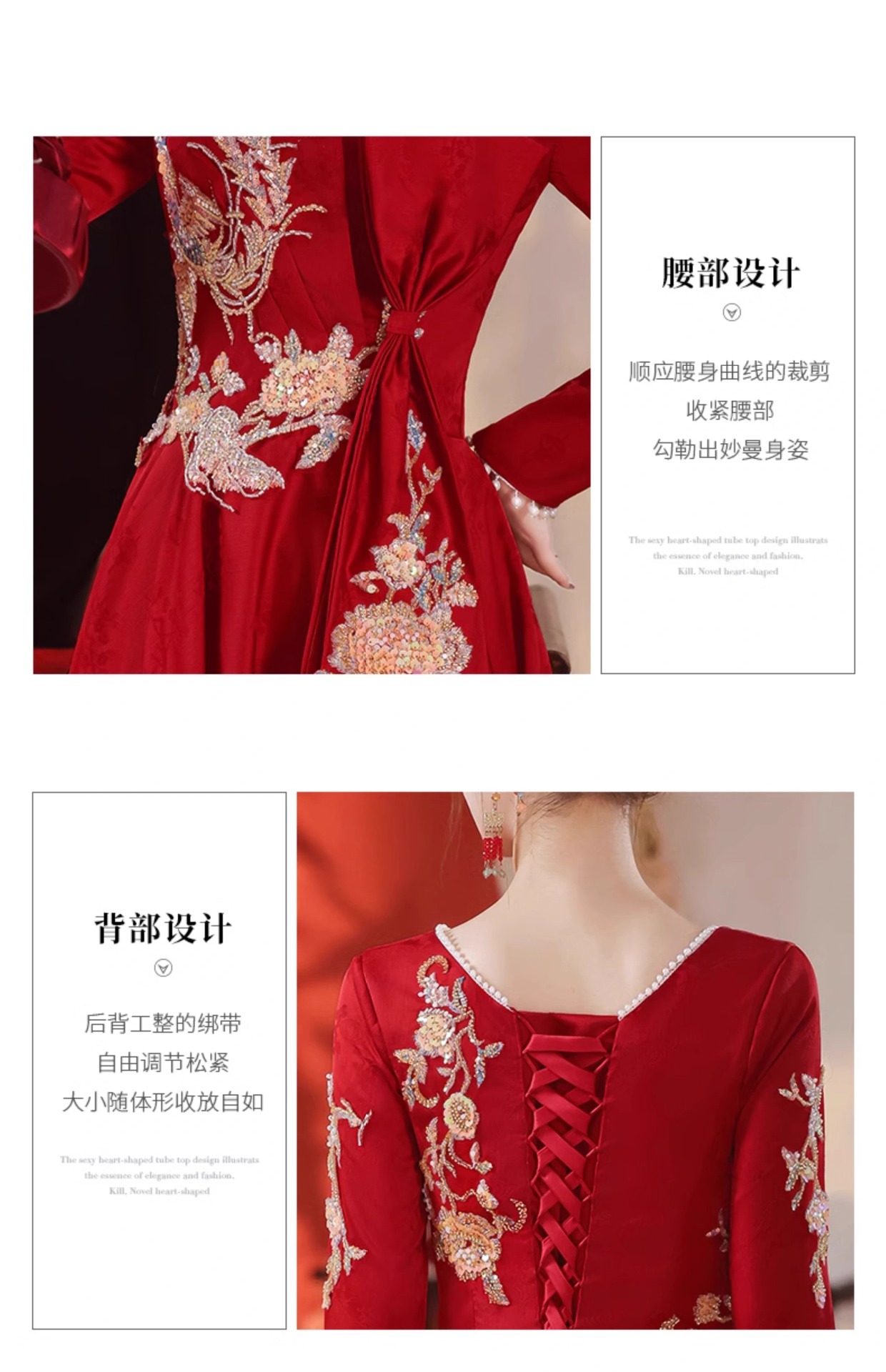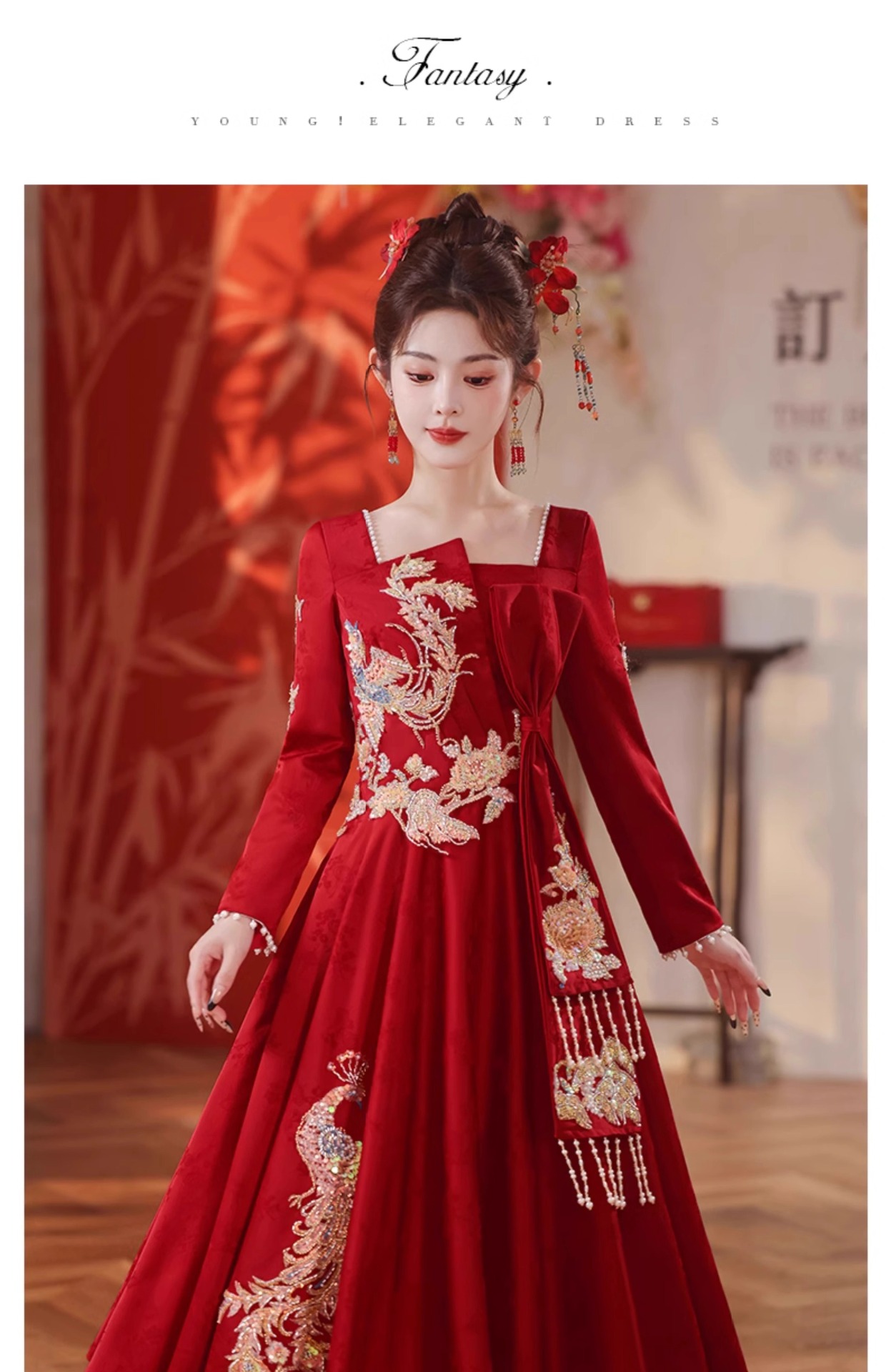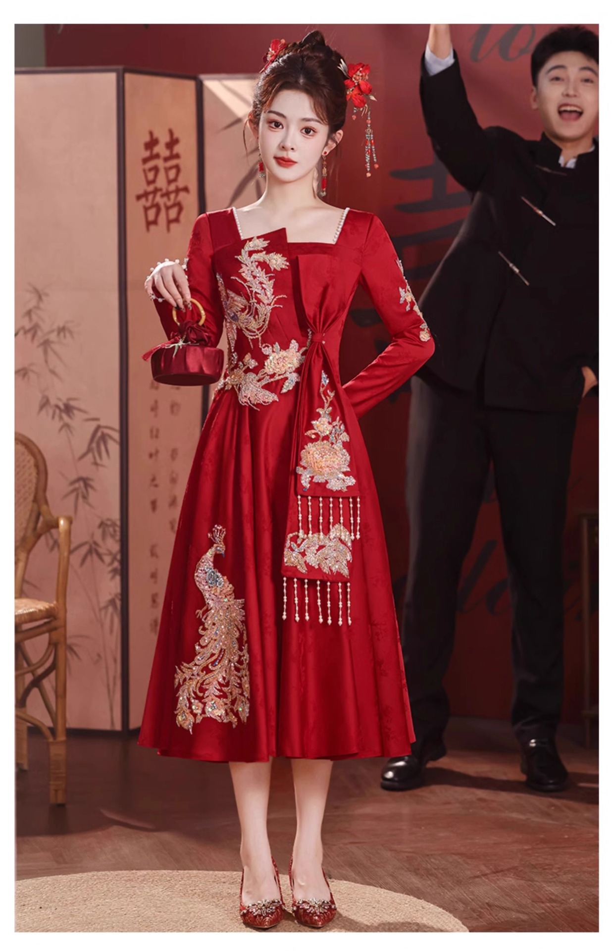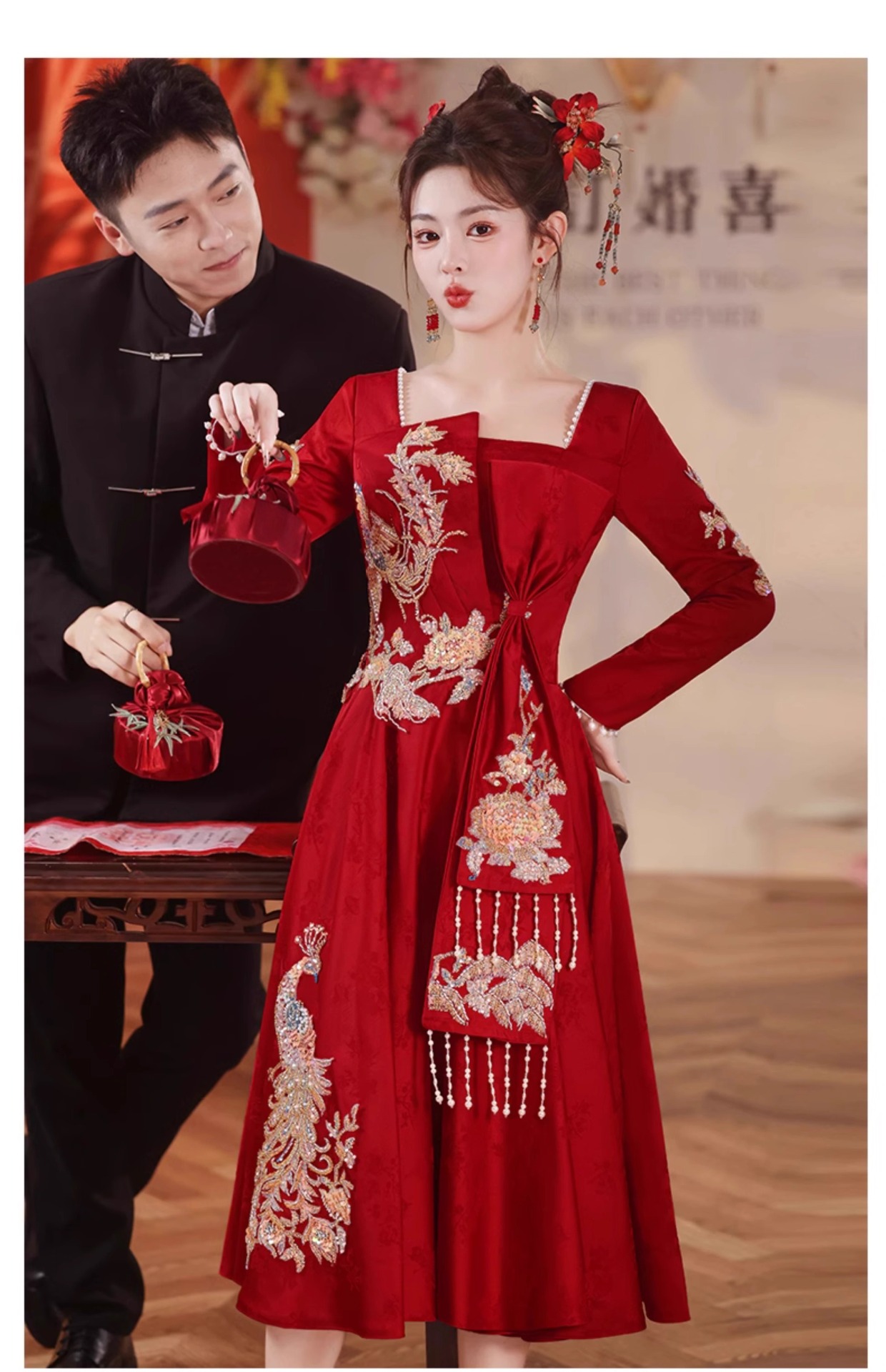 2025年新作 秋冬 高級感 レッド ウェディングドレス 新中式 出閣式 婚約式 披露宴ドレス 女性用