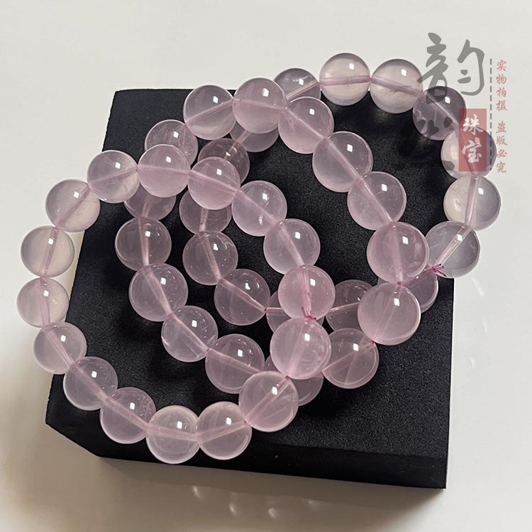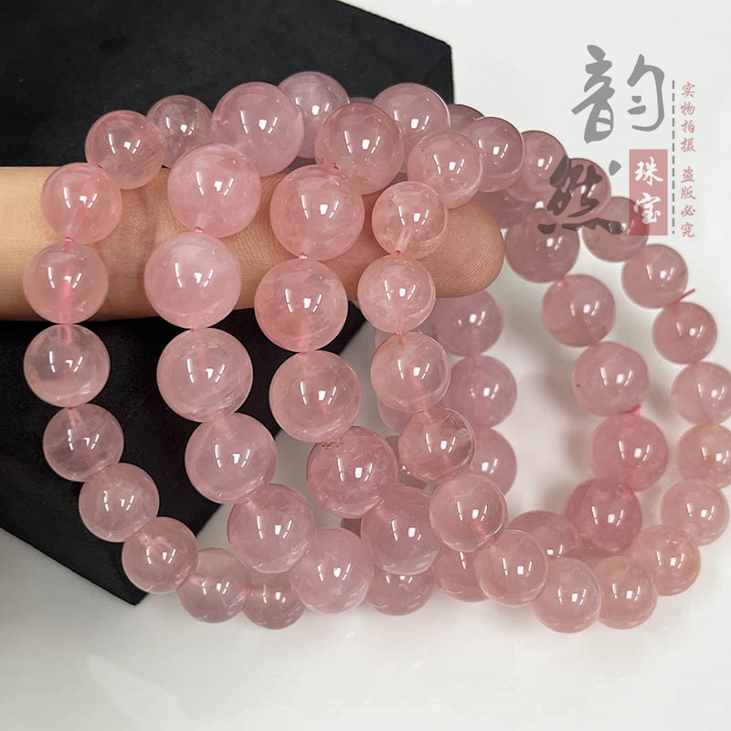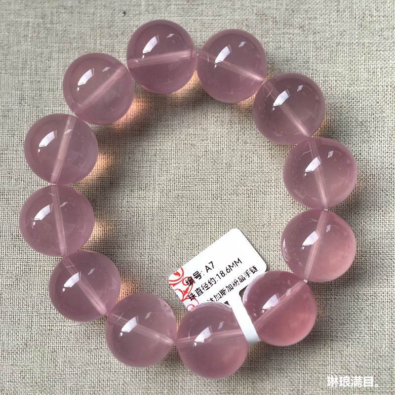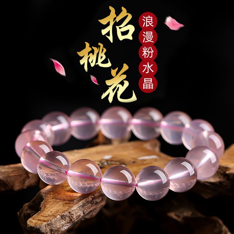 収蔵級天然老料ゼリーマダガスカル粉晶ブレスレット女粉水晶手串大粒招桃花