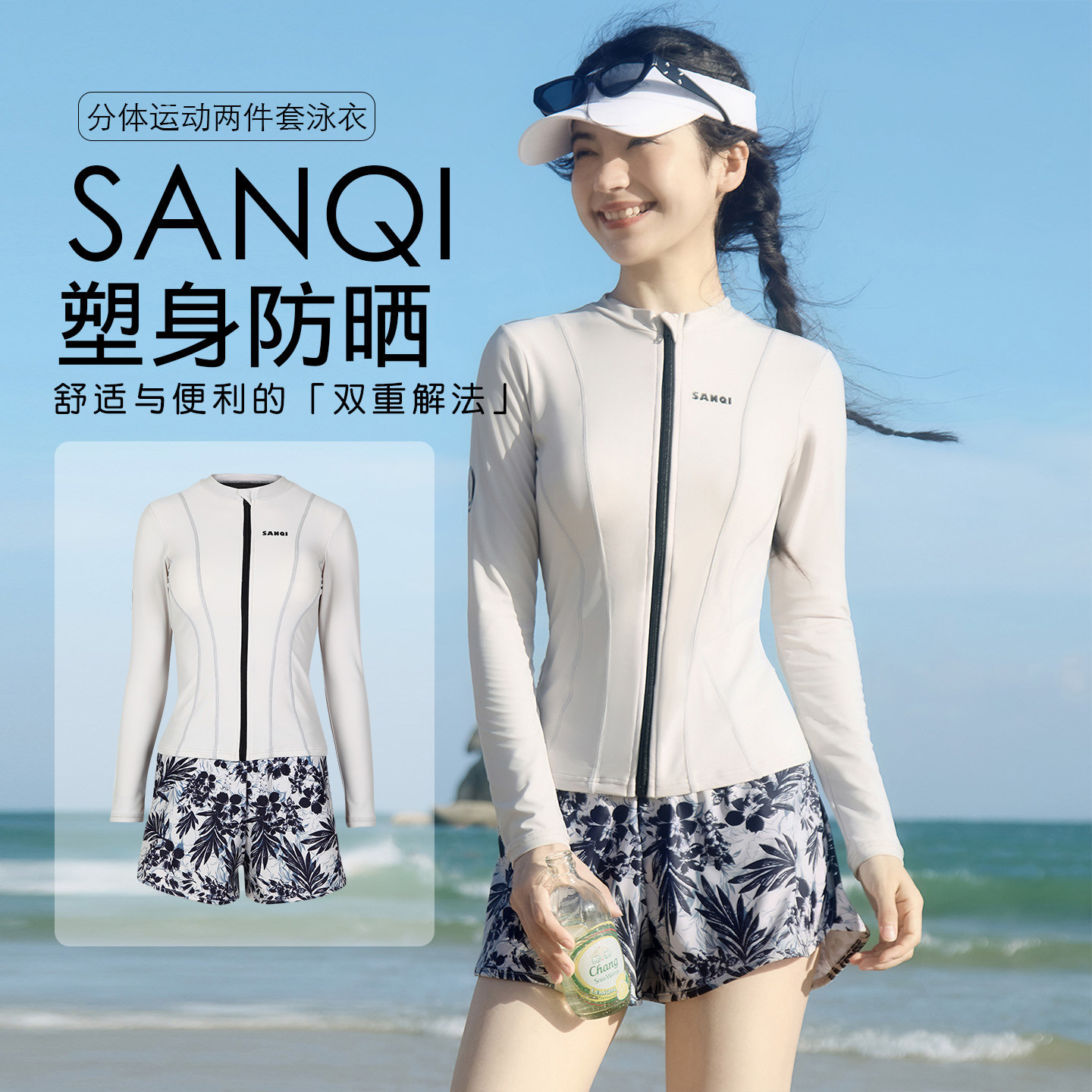 三奇分体泳衣女士2025新款长袖防晒保守泳装泡温泉遮肚显瘦泳装