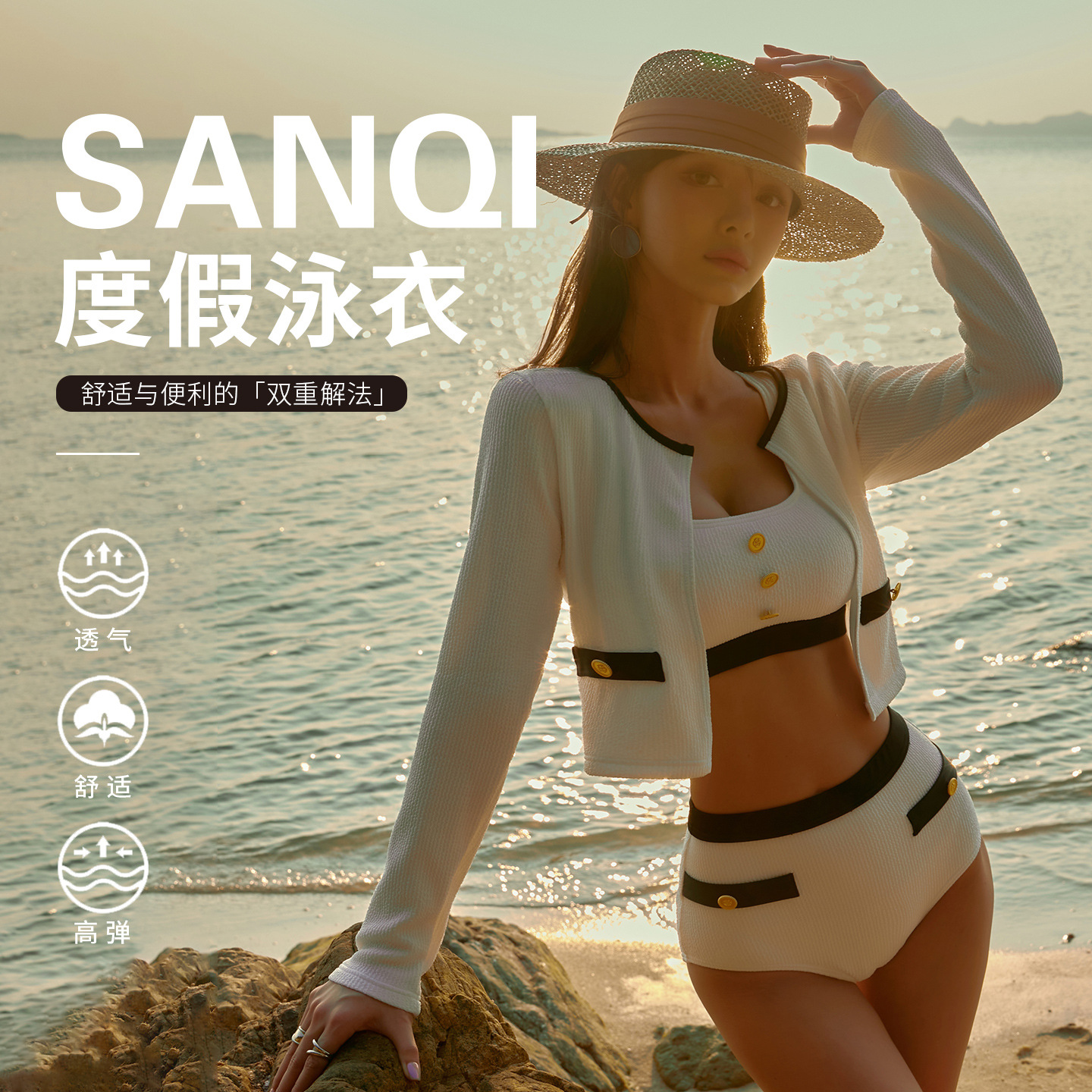 Sanqi Xiaoxiangfeng スプリット水着女性の 2023 新しい長袖カバーアップ 3 点セット温泉休暇セクシーなビキニ