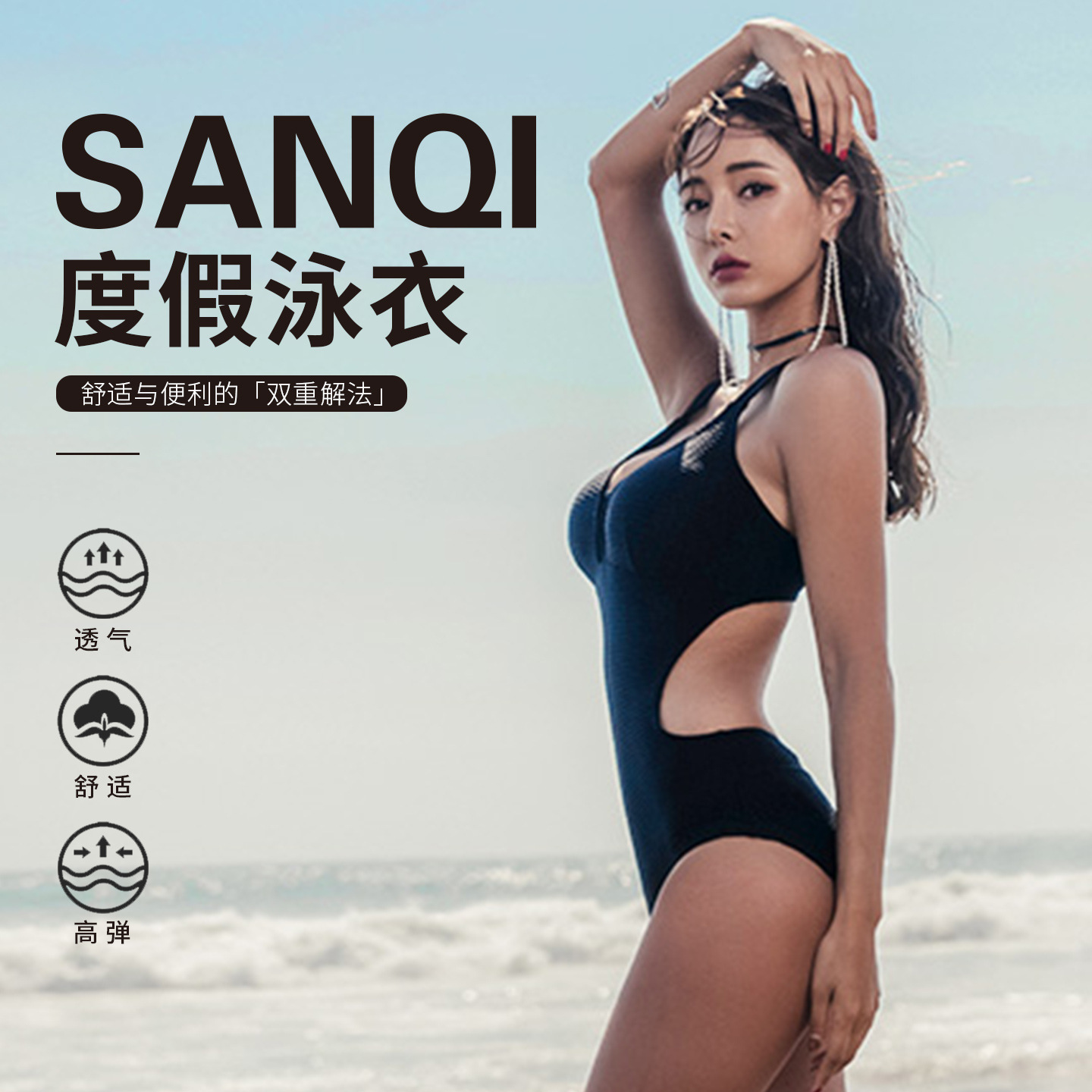 三奇泳衣女2025新款海边度假泡温泉绝美遮肚显瘦泳装高级感泳衣