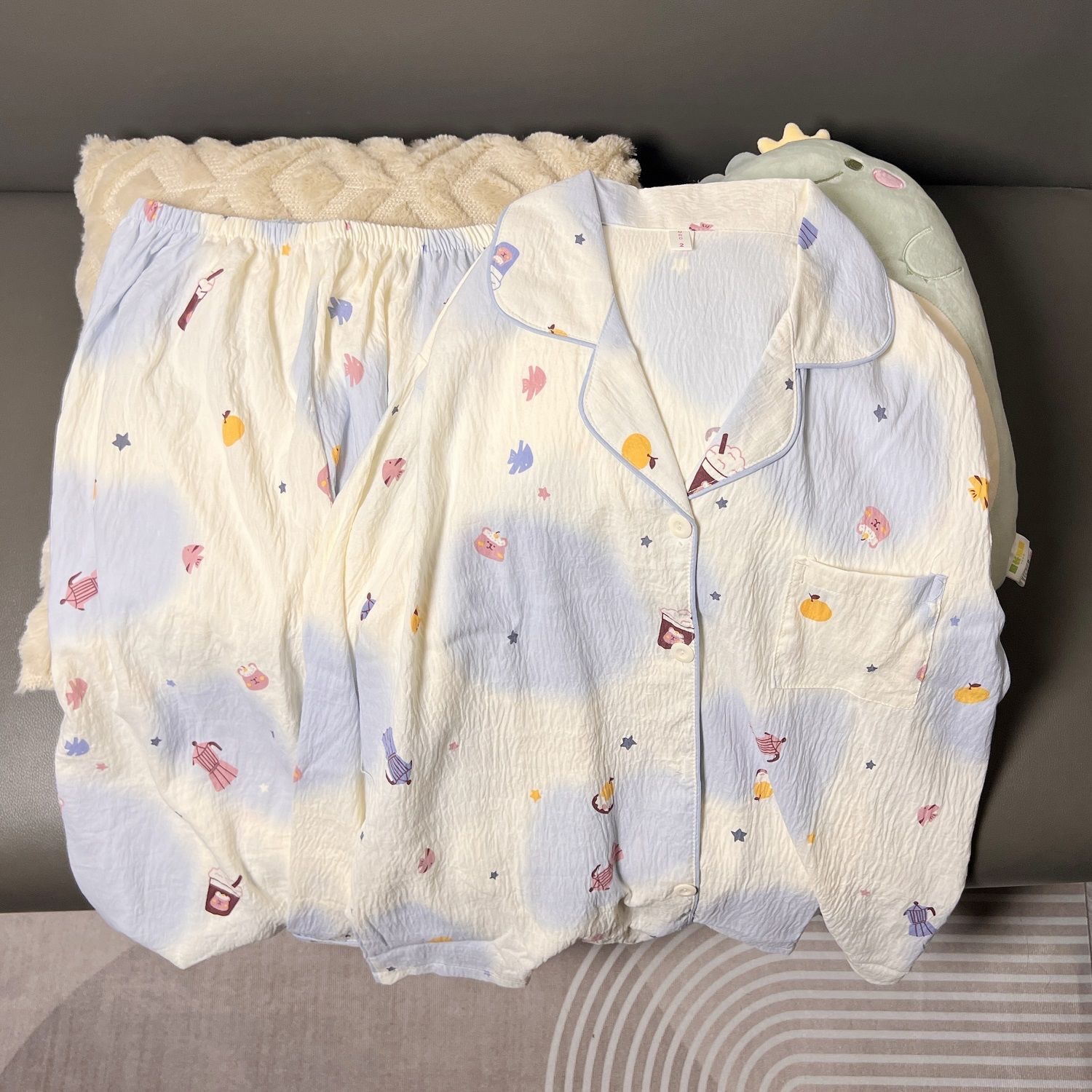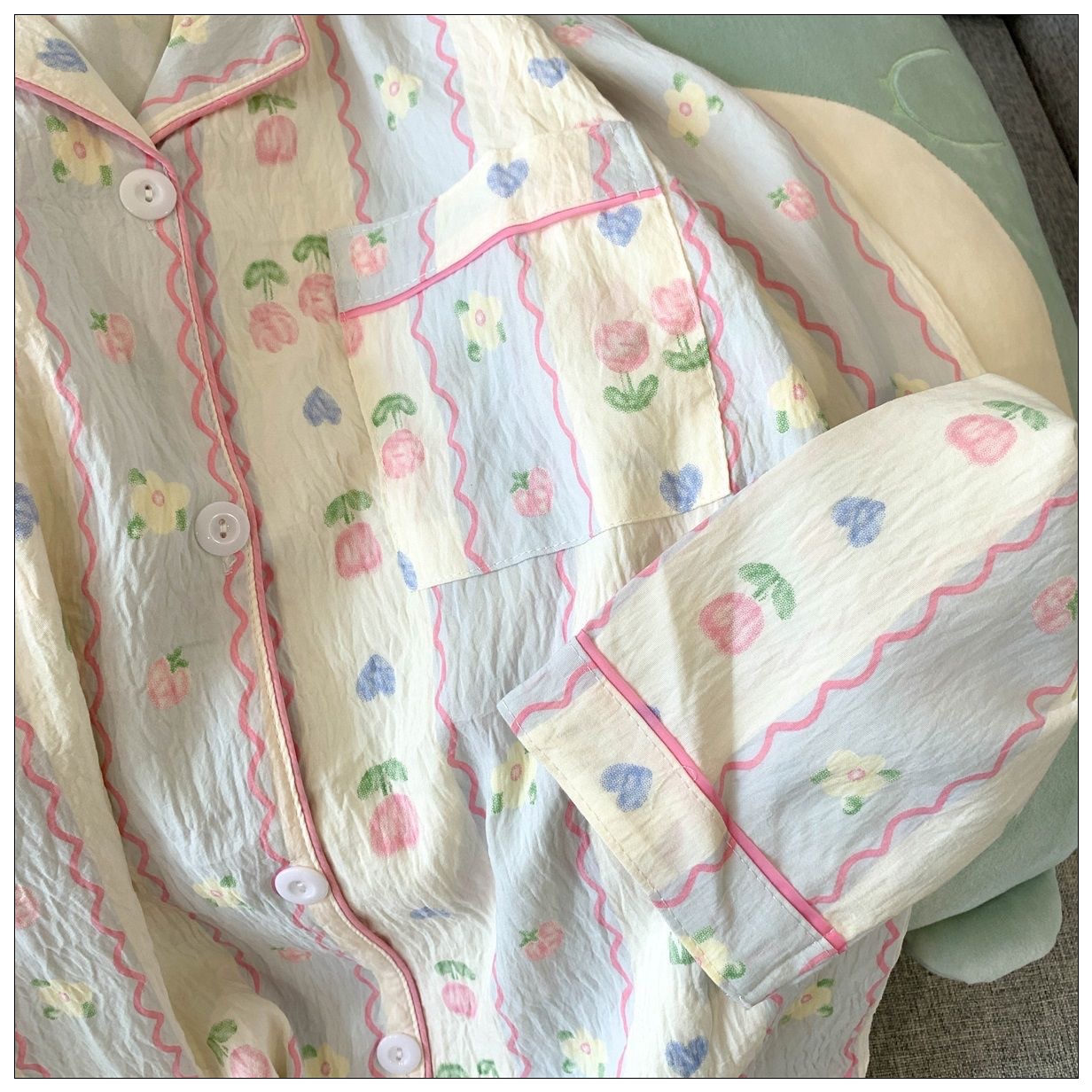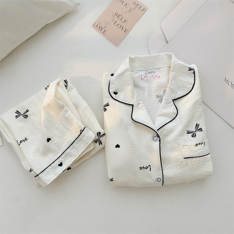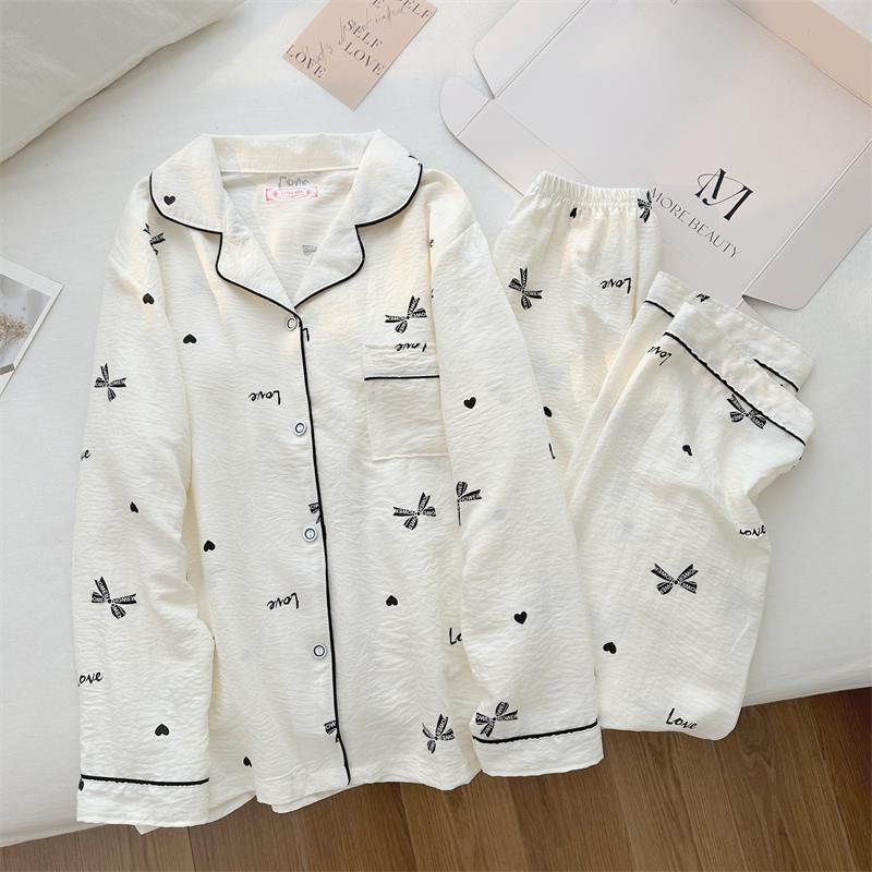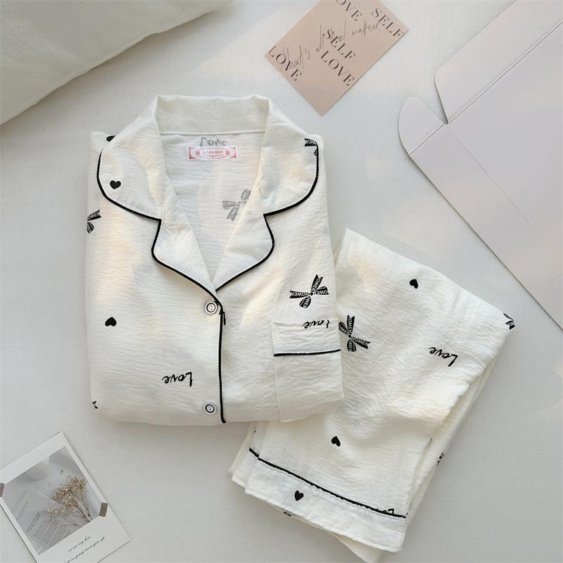 Ins風かわいい雲綿パジャマ女性の新しい春と秋の長袖ズボンの薄い家庭服の2つのセット