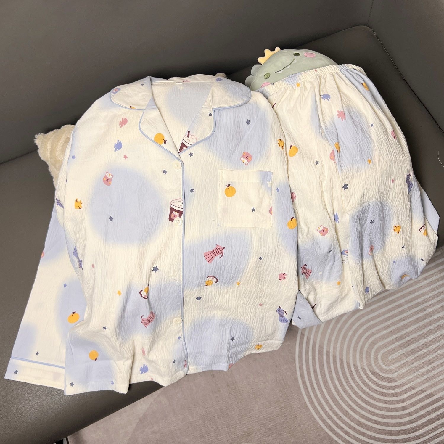 新作長袖長ズボンパジャマ 女の子 春秋新作 可愛い カラフル 水玉雲柄 コットン ホームウェアセット