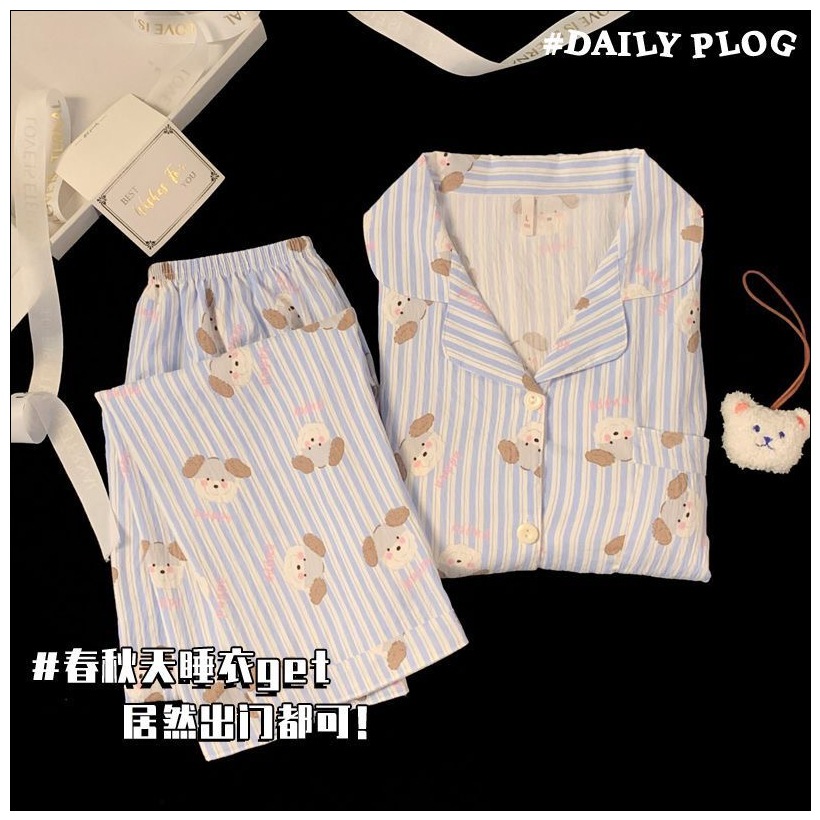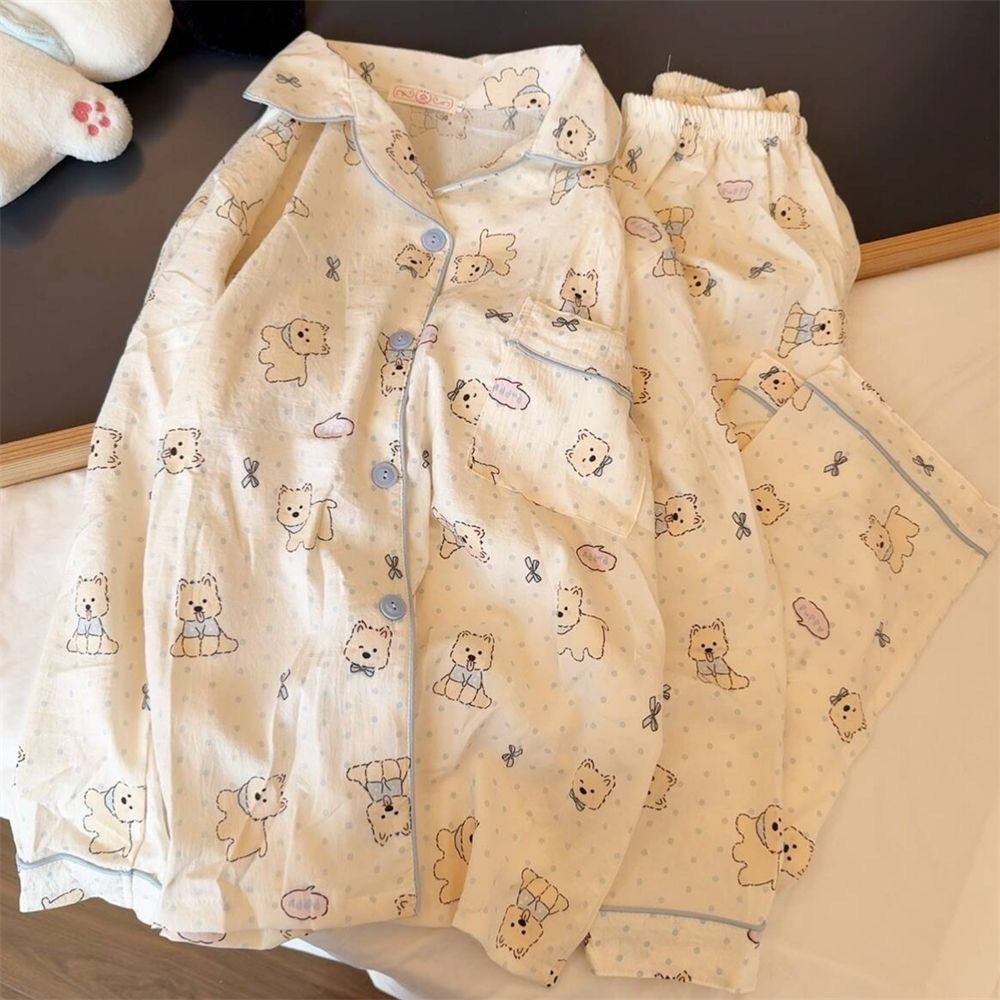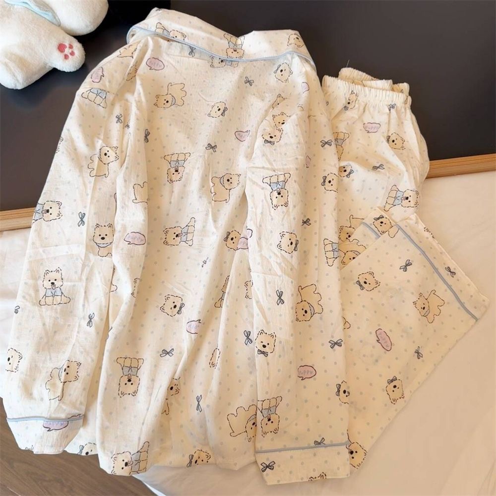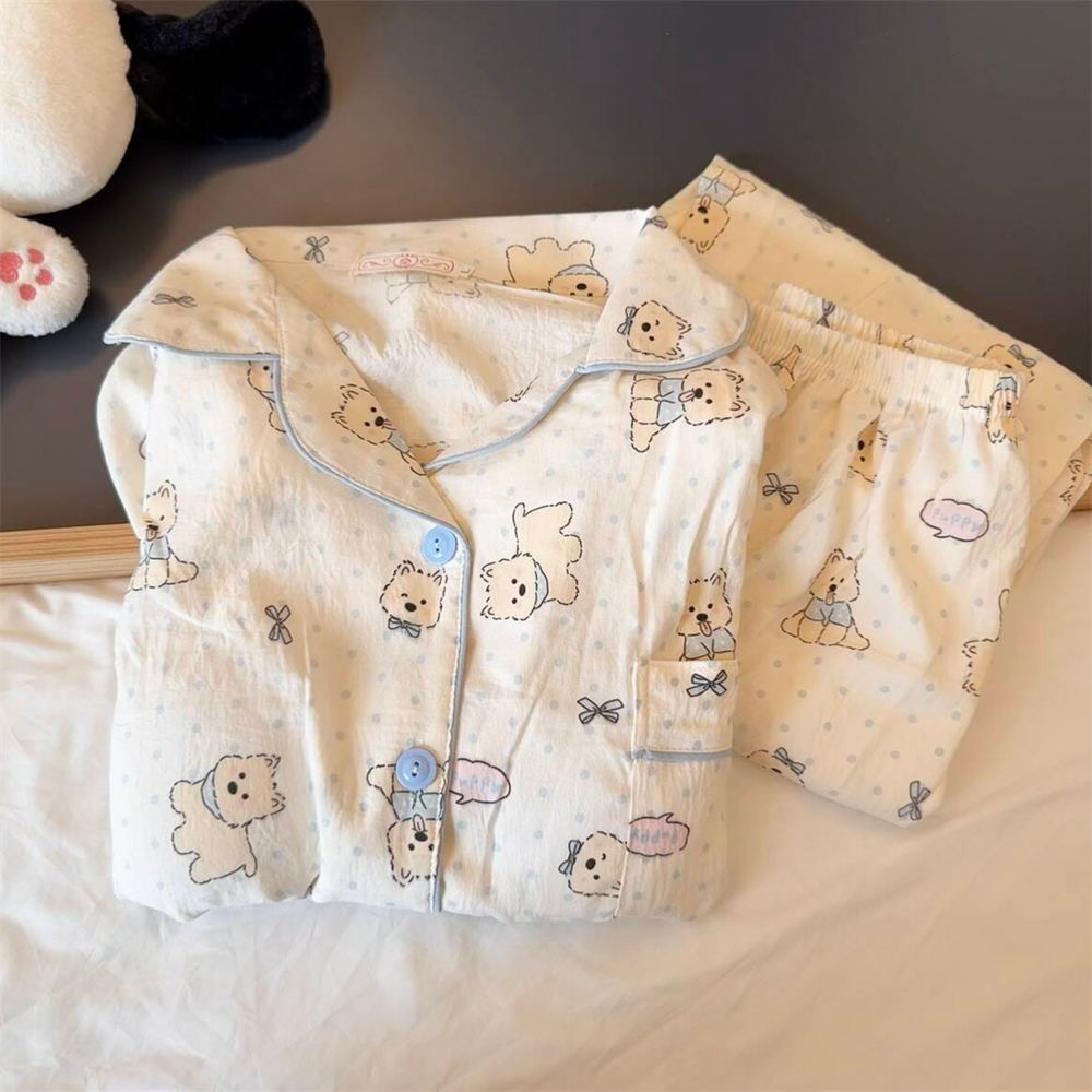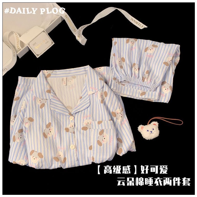 クラウドコットンパジャマ女性のための春と秋のかわいい子犬漫画長袖インターネット有名人イン漫画クマホーム服セット