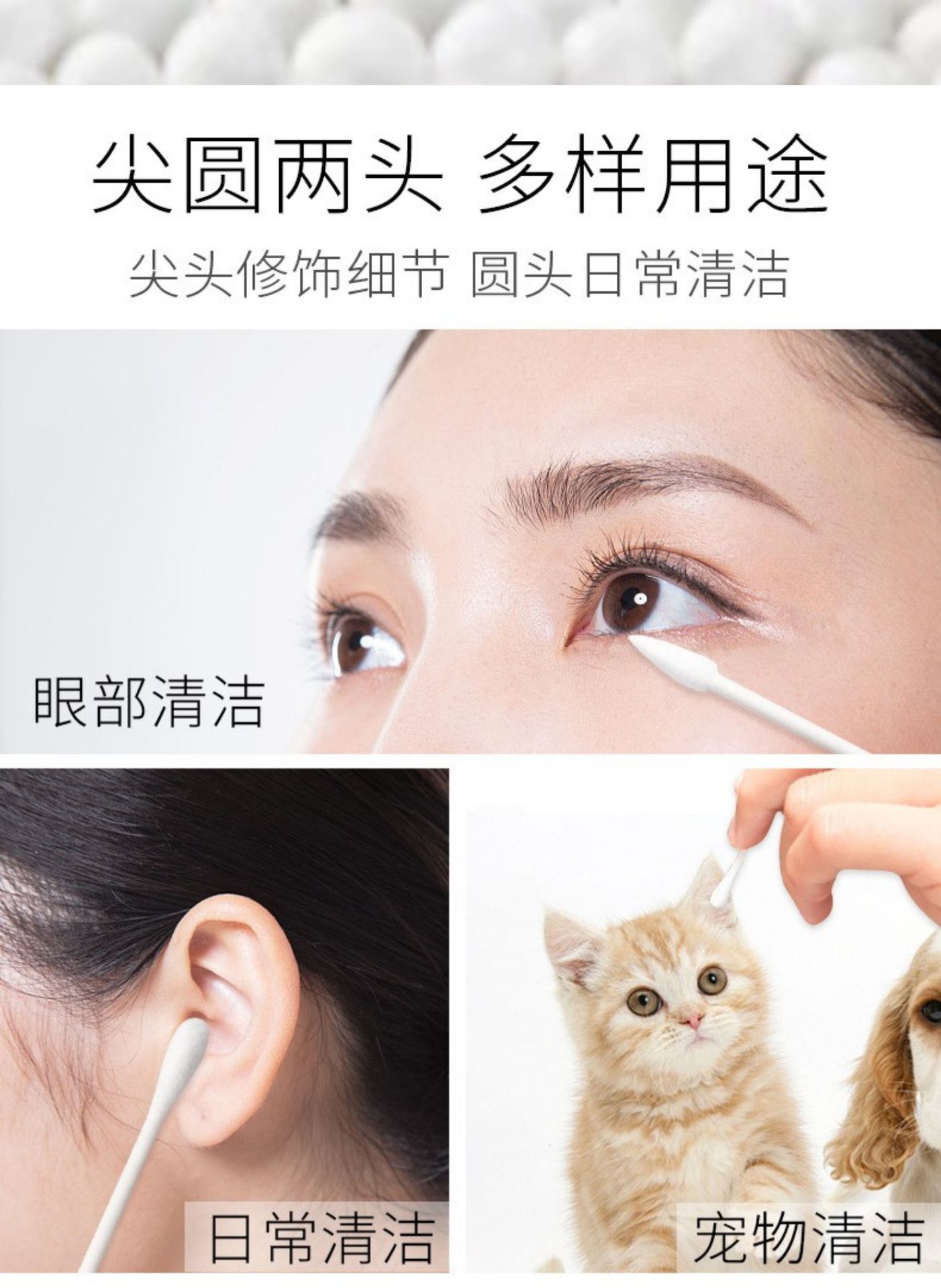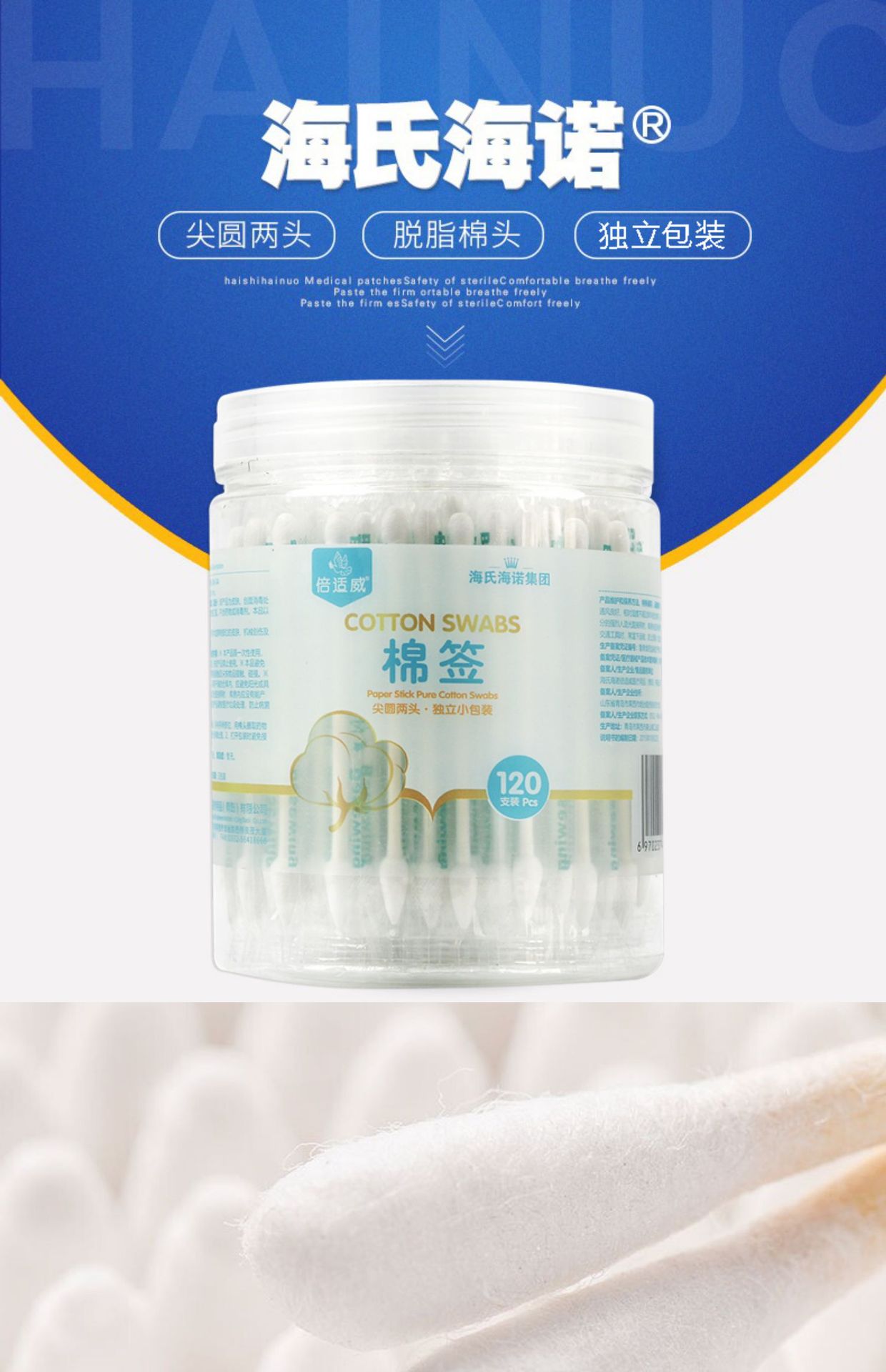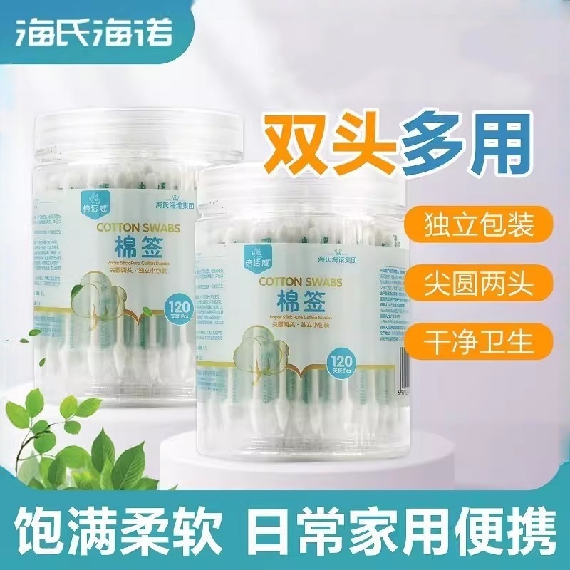 海氏海諾医療級綿棒使い捨て家庭用化粧品抜耳医薬先丸双頭脱脂綿棒携帯