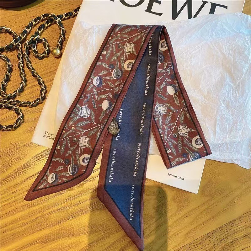 赤い気質二層プリントロングシルクスカーフヘッドバンド女性の韓国スカーフストリーマー装飾スーツスカーフ多用途