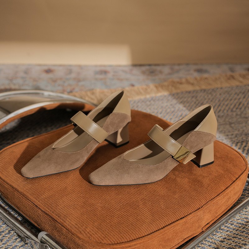 【鳳通】5996世家の娘秀秋冬絨面レトロな靴の太さと疲れない足の優雅な気質ハイヒール