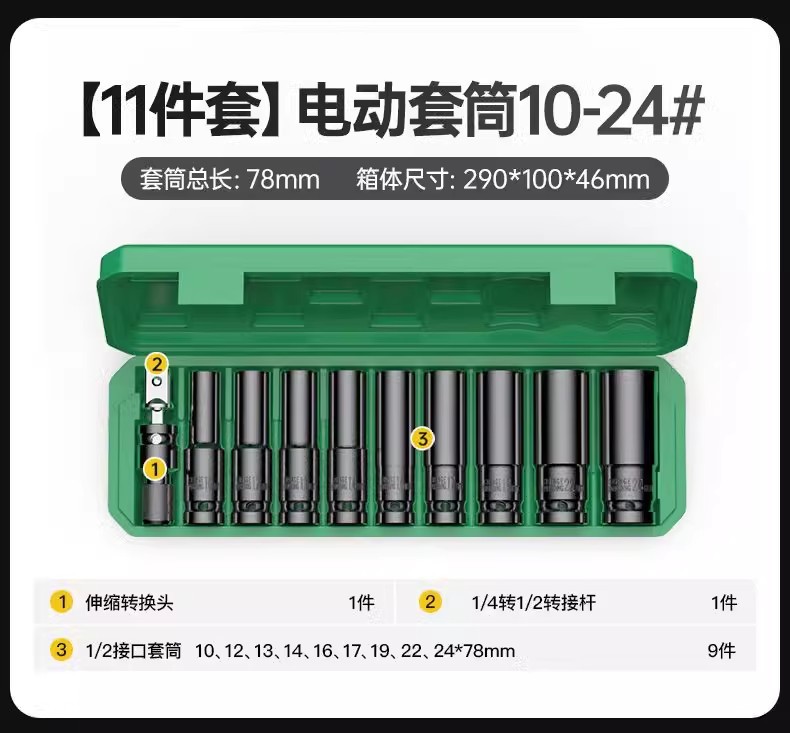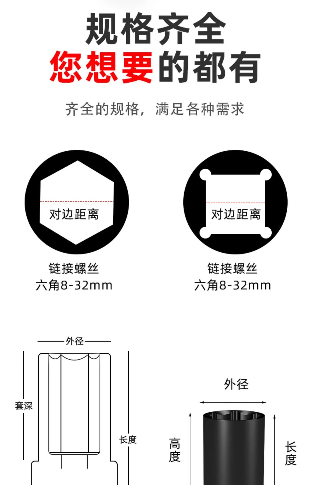 前線威特大飛ソケットレンチ電動延長六角8-32mm風ロット12ソケットセット