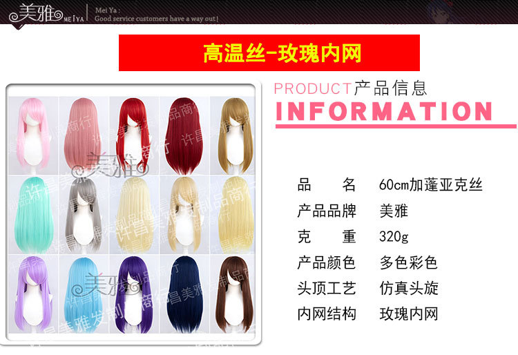 万用80cm长直发 玫瑰网无短发排 二次元cos毛坯 毛娘专用