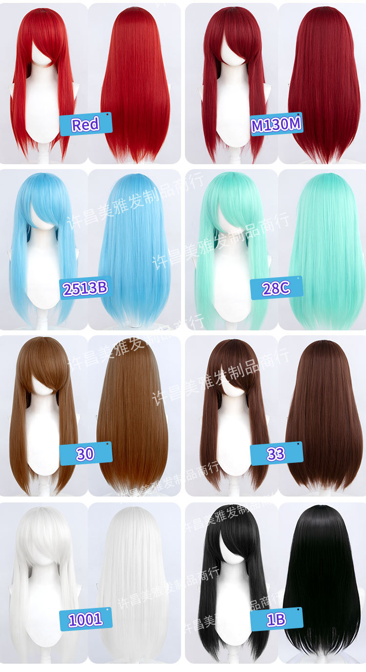 60cmコスプレアニメユニバーサルかつらコスプレ义毛赤黒青绿ブラウン紫ピンクロングストレート