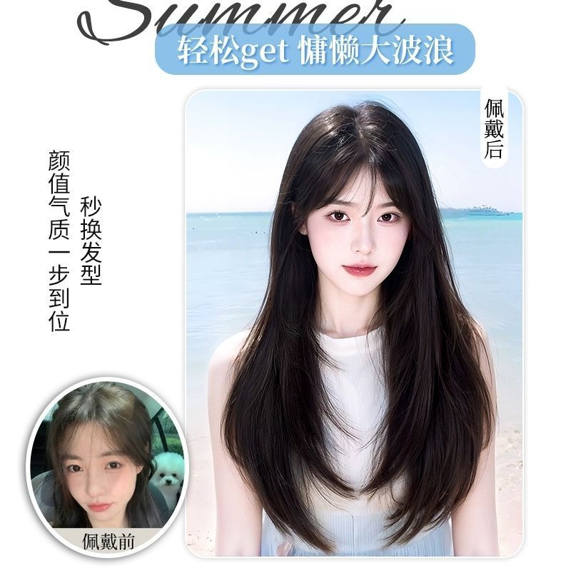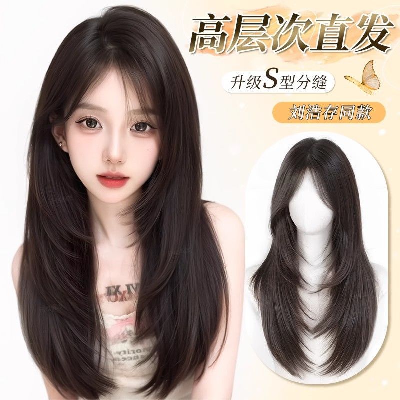 かつら女性の全頭カバー式ステルス無痕自然高レベル髪型ふわふわファッションロングストレートかつらセット