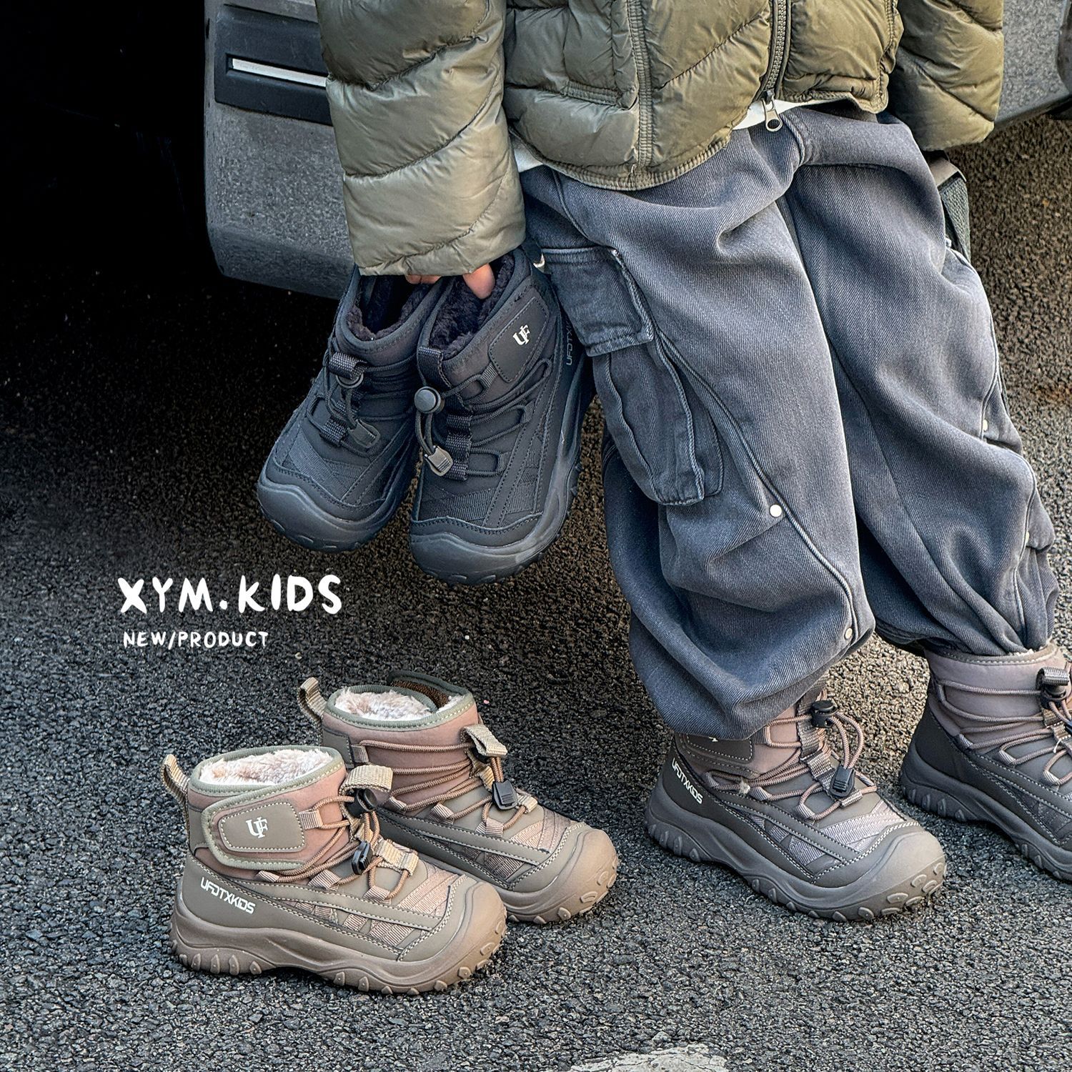 QQO童鞋 2025冬新款儿童防滑防水棉鞋男女童雪地靴户外加绒登山鞋