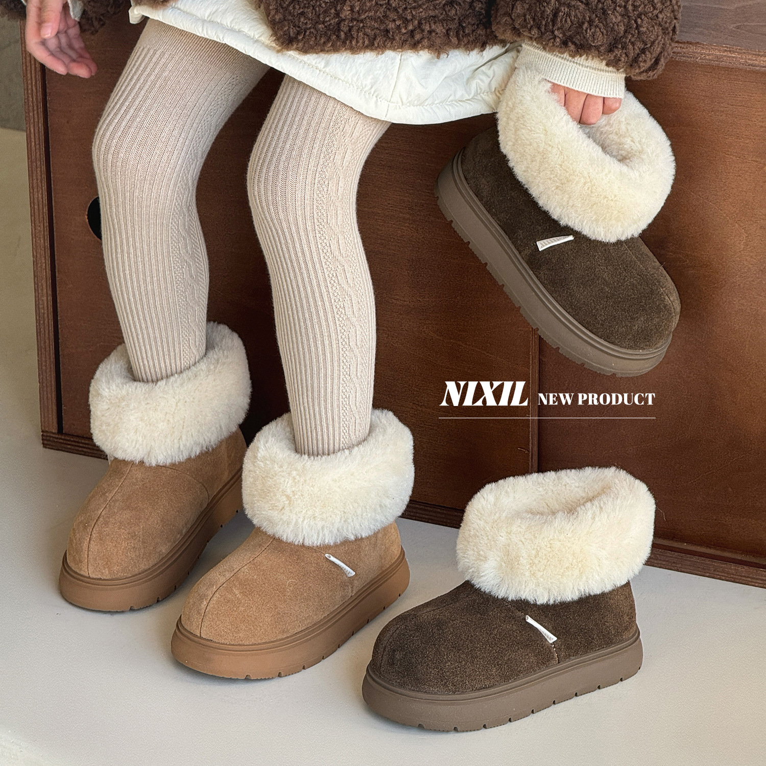 子供靴、冬用子供スノーブーツ、ローバンショートブーツ、ヌバックレザーベビーブーツ、韓国風包頭綿ブーツ、男の子と女の子用