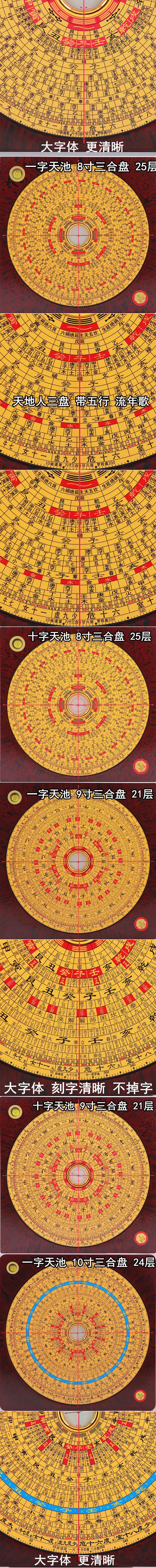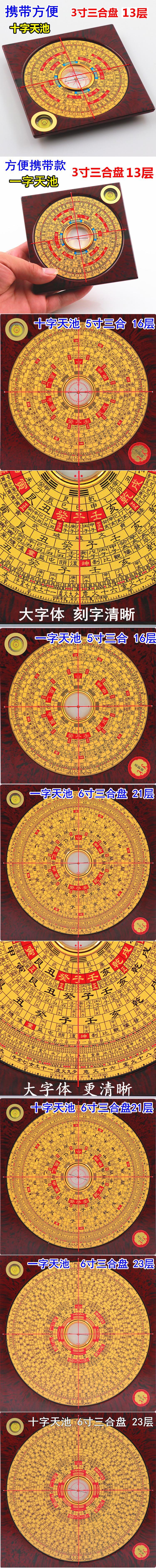 専門風水コンパス高精度崇道堂三合盤3インチ5インチ6インチ8インチ10インチ銅上塗り塗料測量風水
