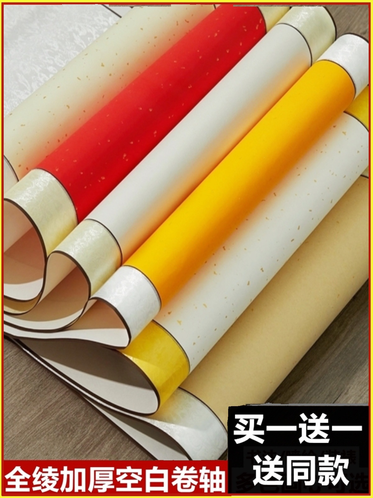 青石画軸空白巻物掛け画全綾精表装半生熟宣紙生宣全綾精表装書道国画紙