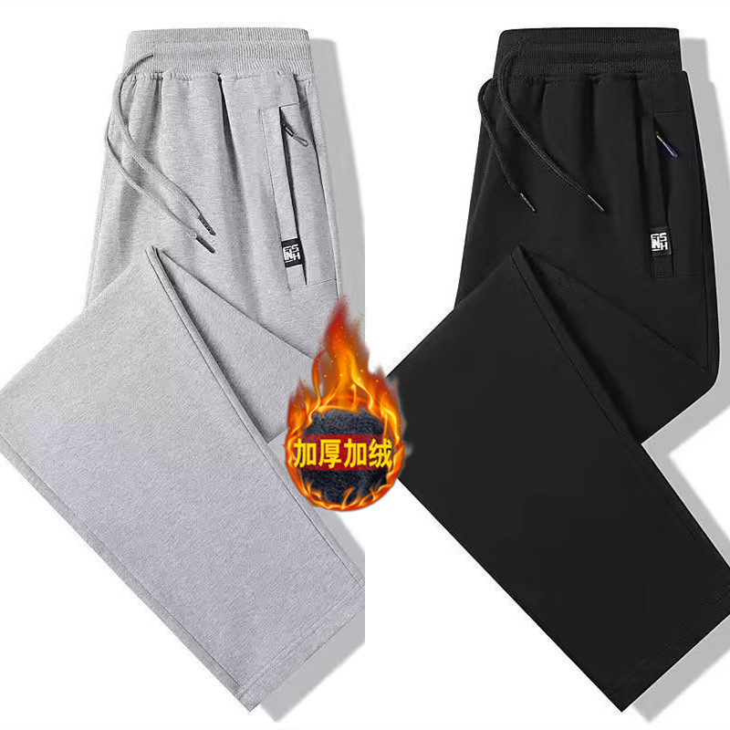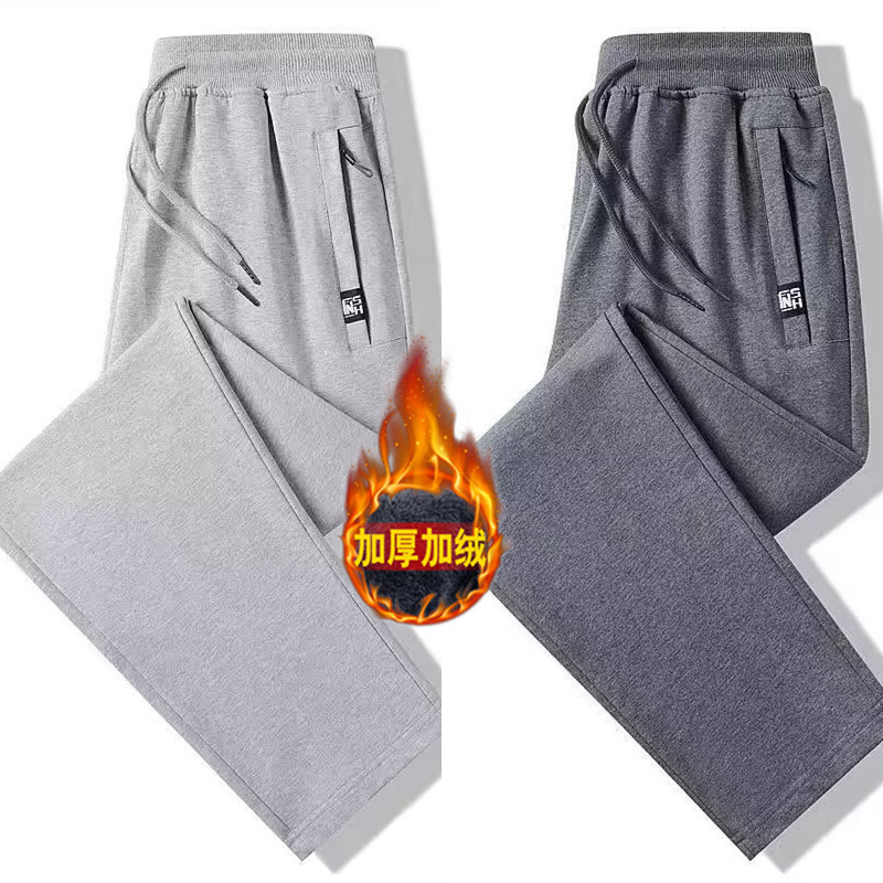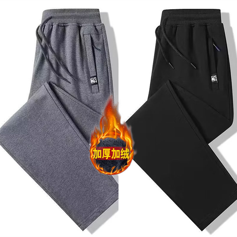 カジュアルパンツの男性韓国版のファッション秋冬の大きいサイズの運動のまっすぐな筒のゆったりしているベルベットの厚い広足の衛のズボンの男性