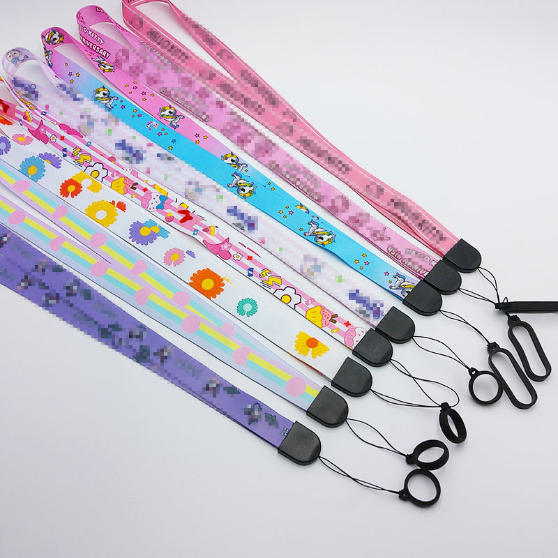 メーカー卸売ポリエステル携帯電話ストラップ電子噴霧タバコロッドストラップシリコンリング印刷可能なロゴ熱転写ストラップ