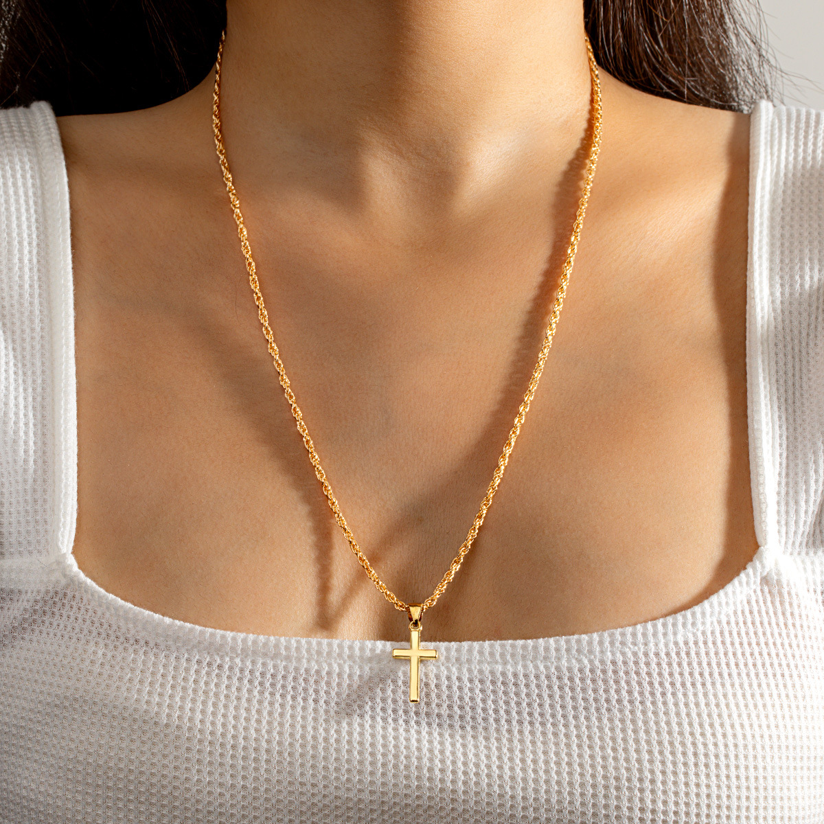 亚马逊跨境热卖时尚简约小众百搭十字架吊坠麻花链项链男女通用