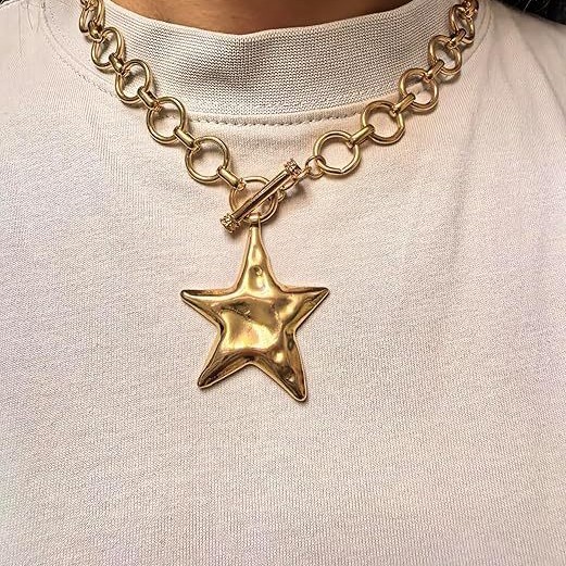 欧美跨境饰品链条轻奢不规则敲打五角星吊坠项链通勤百搭几何