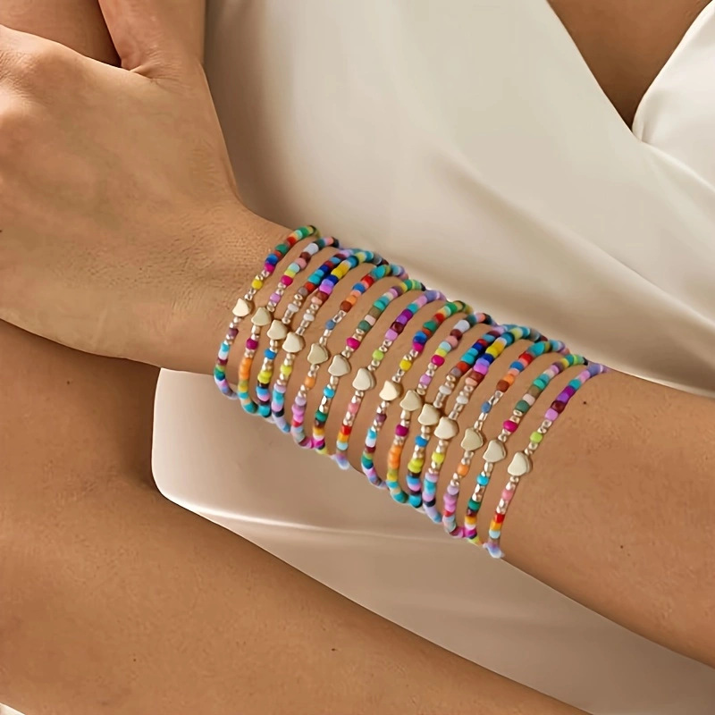 ファッション個性風CCB愛ランダムカラー米珠弾力婦人ブレスレット7点セットアクセサリーセット卸売り