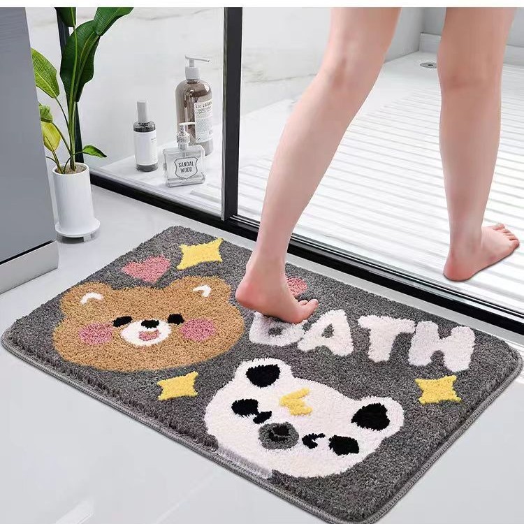 热销家用地毯防滑进门浴室吸水脚垫长短毛绒浴缸卡通地垫入户门