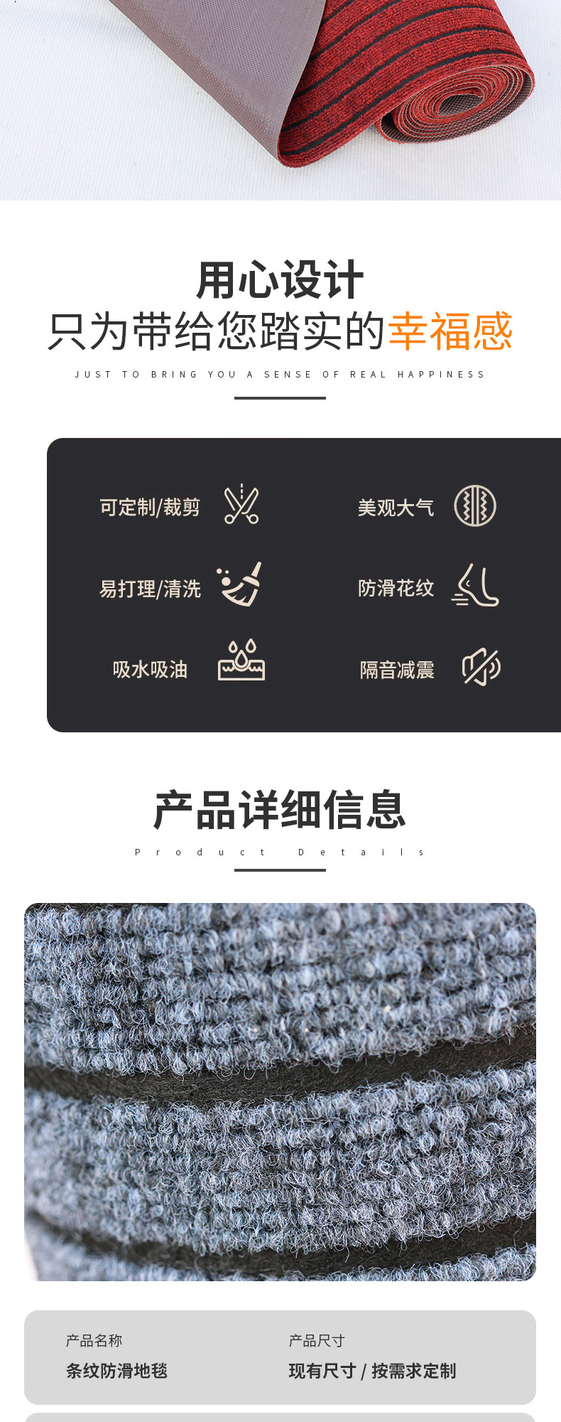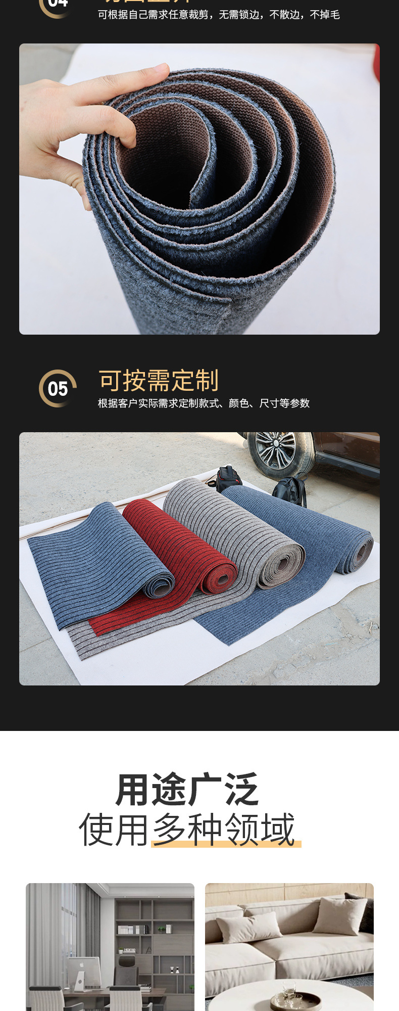 可裁剪地垫门垫进门脚垫厨房阳台房间满铺大楼梯商用吸水防滑毯子
