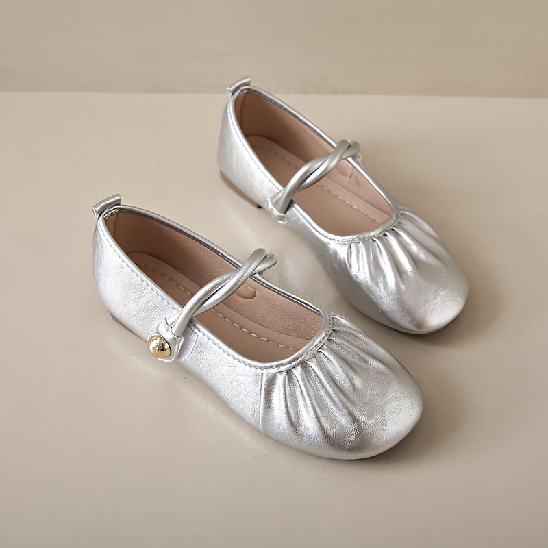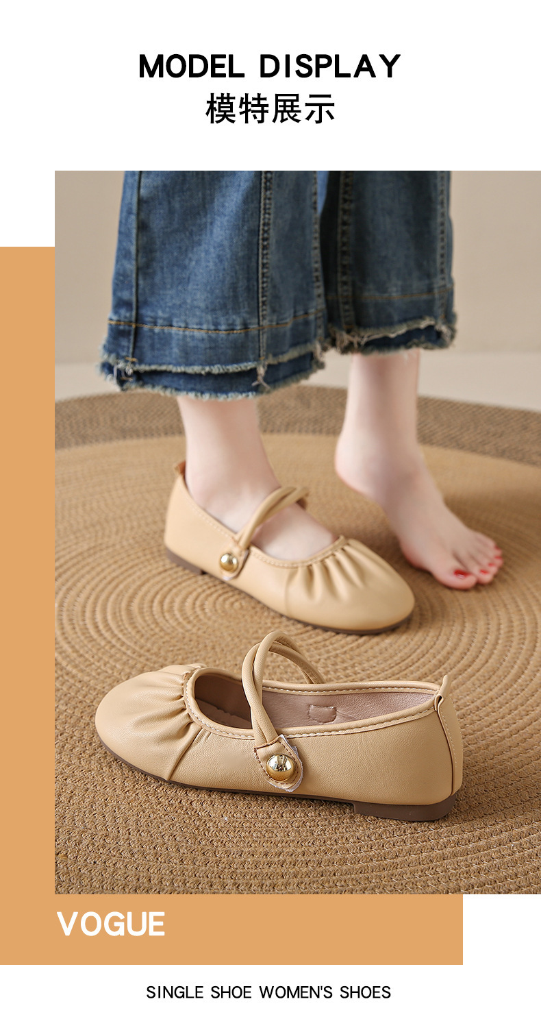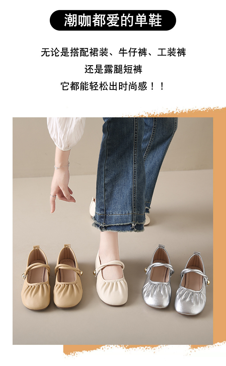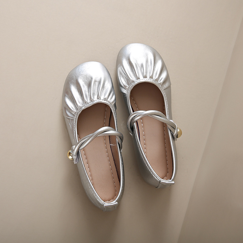 浅口銀色のメアリージェーン靴女2024春秋の新型韓国版アンドロメダ風ファッションしわ平底豆靴