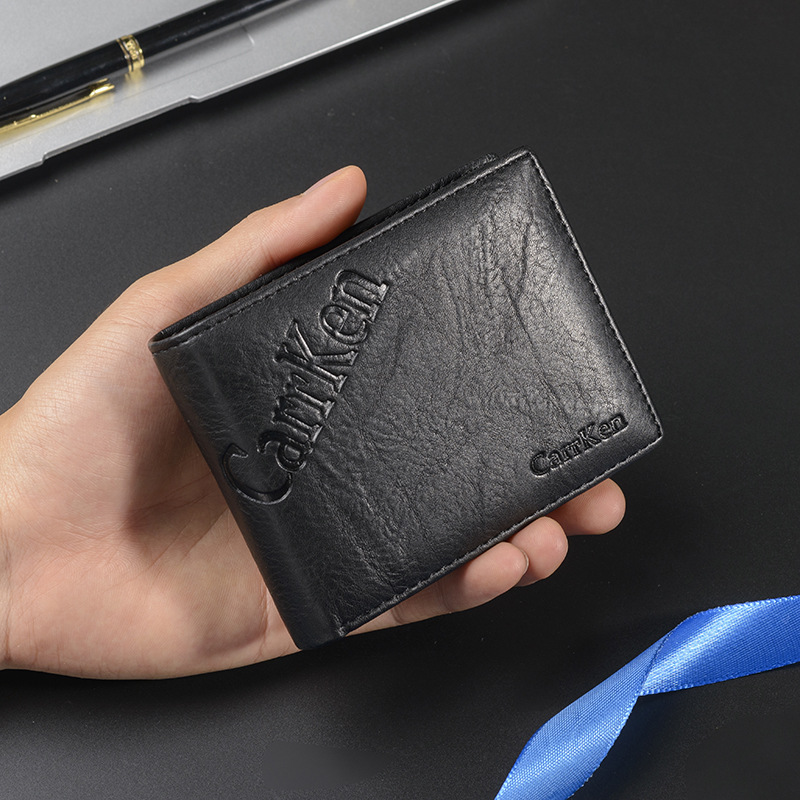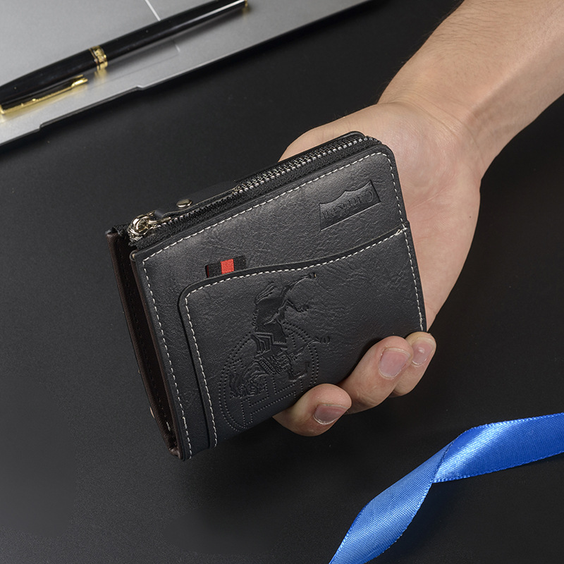 新しいメンズ財布エンボスショートジッパー財布薄型マルチカードスロット大容量水平フォトポジションソフトレザー財布