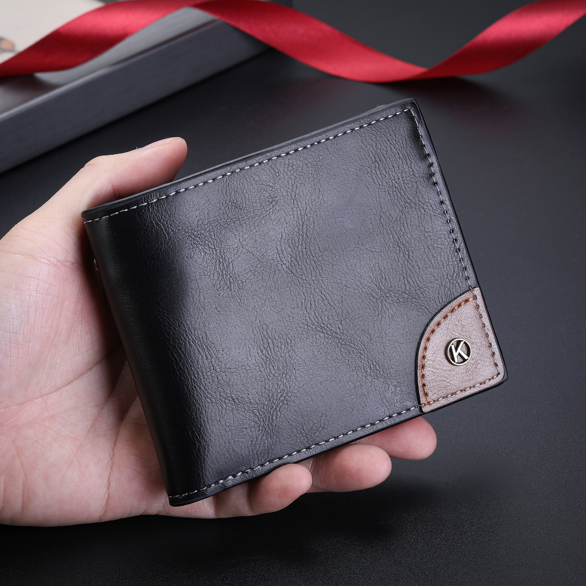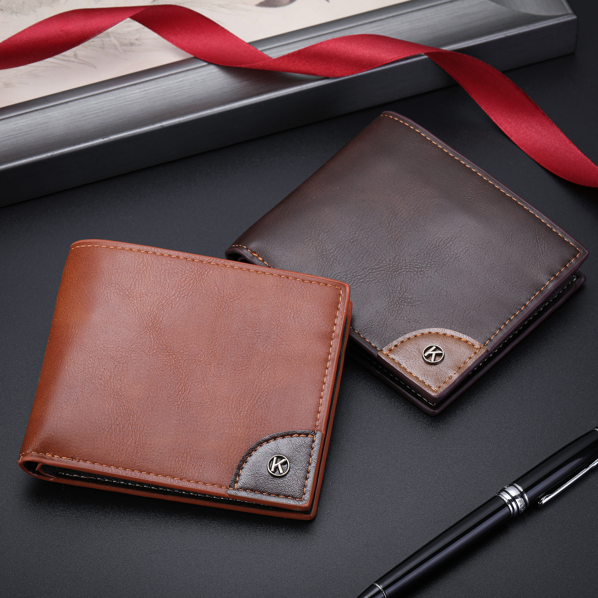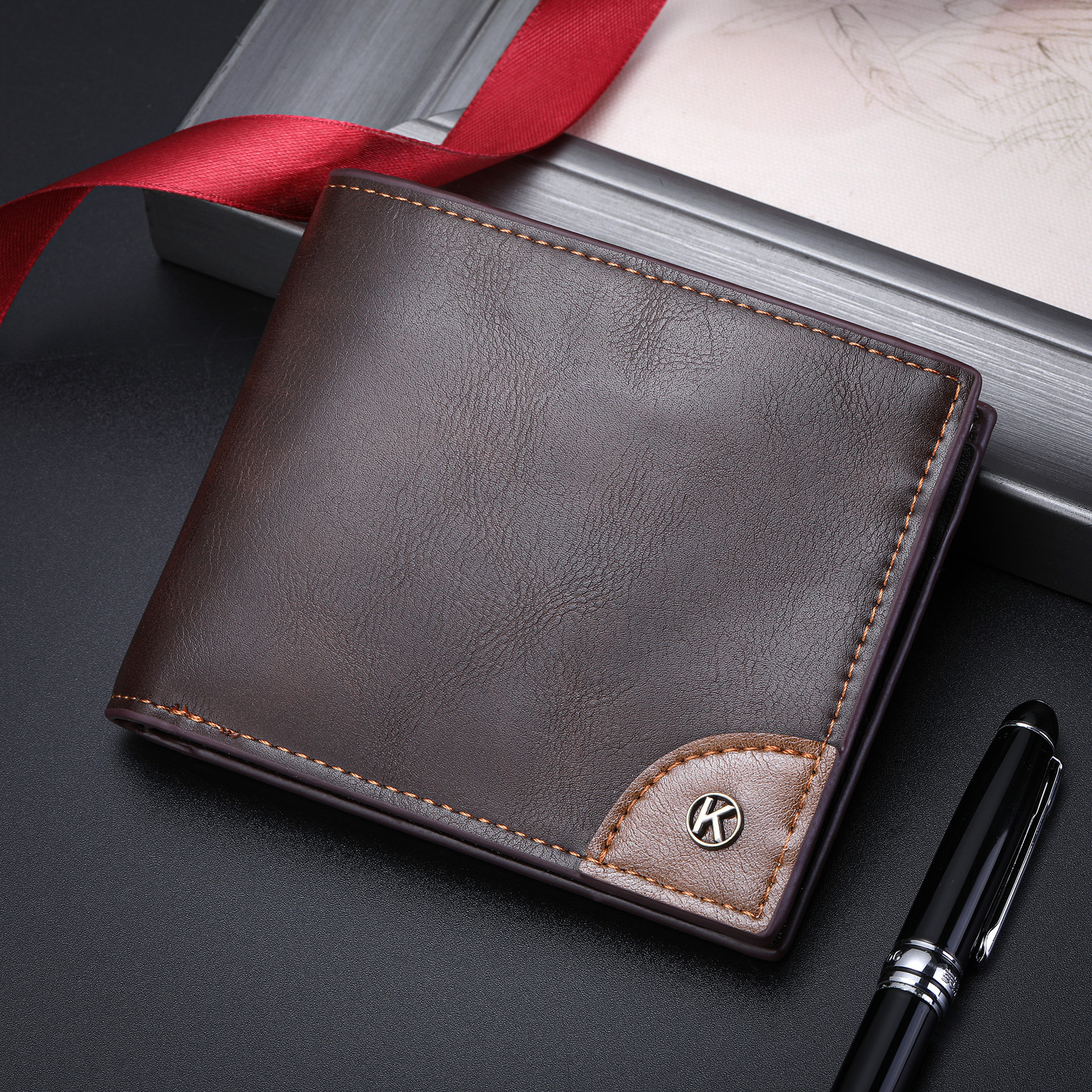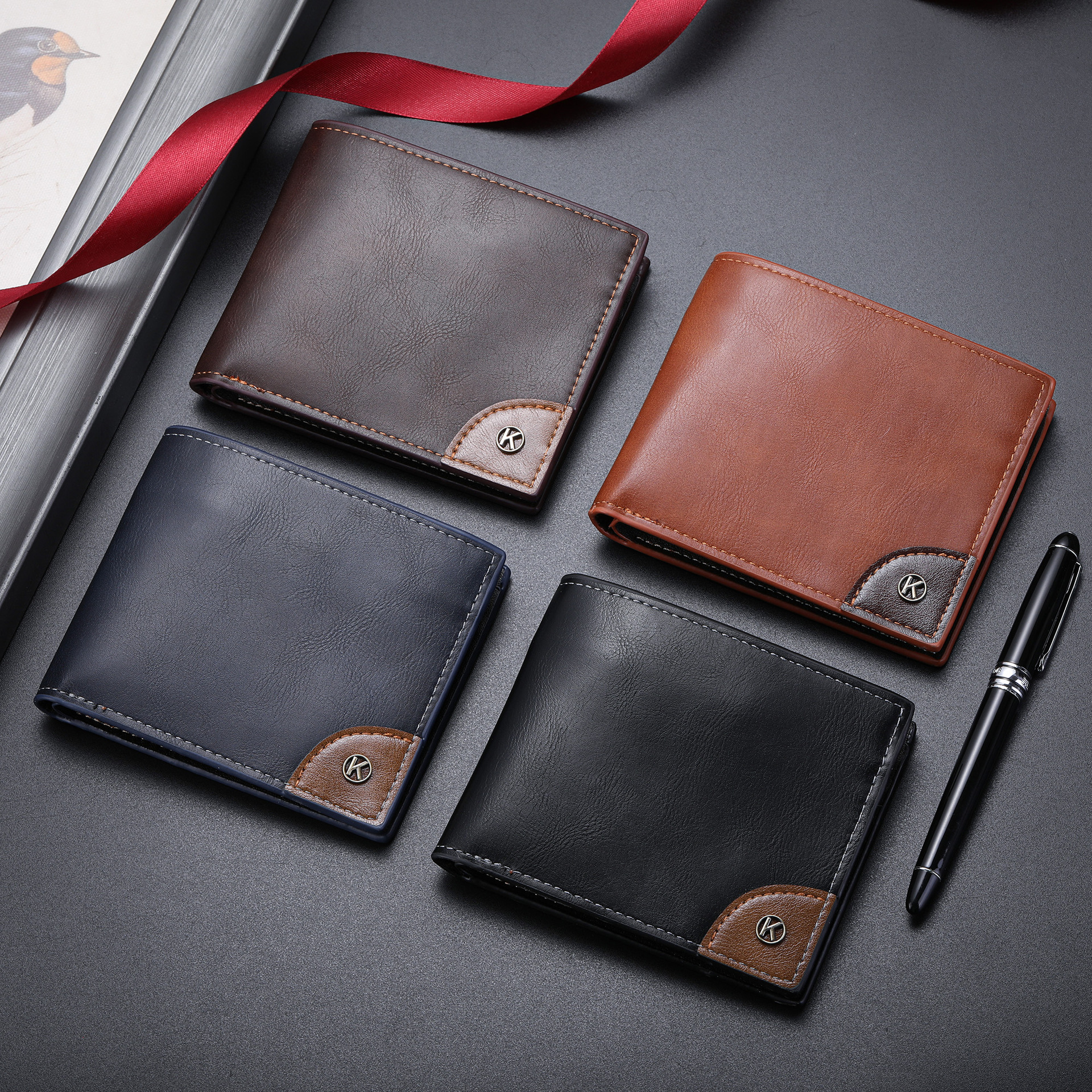 2024国境を越えた新しい男性の短い財布欧米のレトロなファッションは学生の多カードの3割引の小銭入れをつなぎ合わせます。