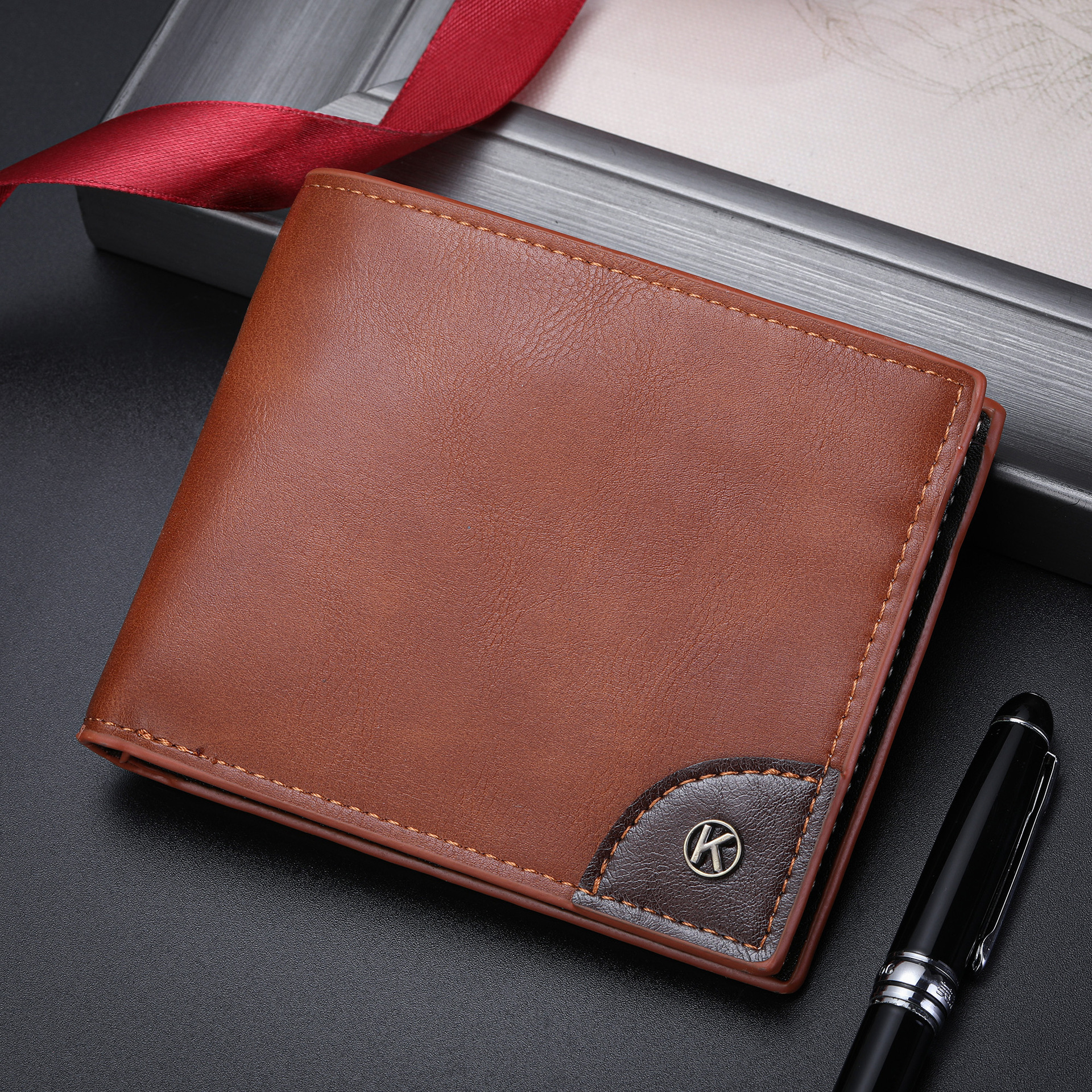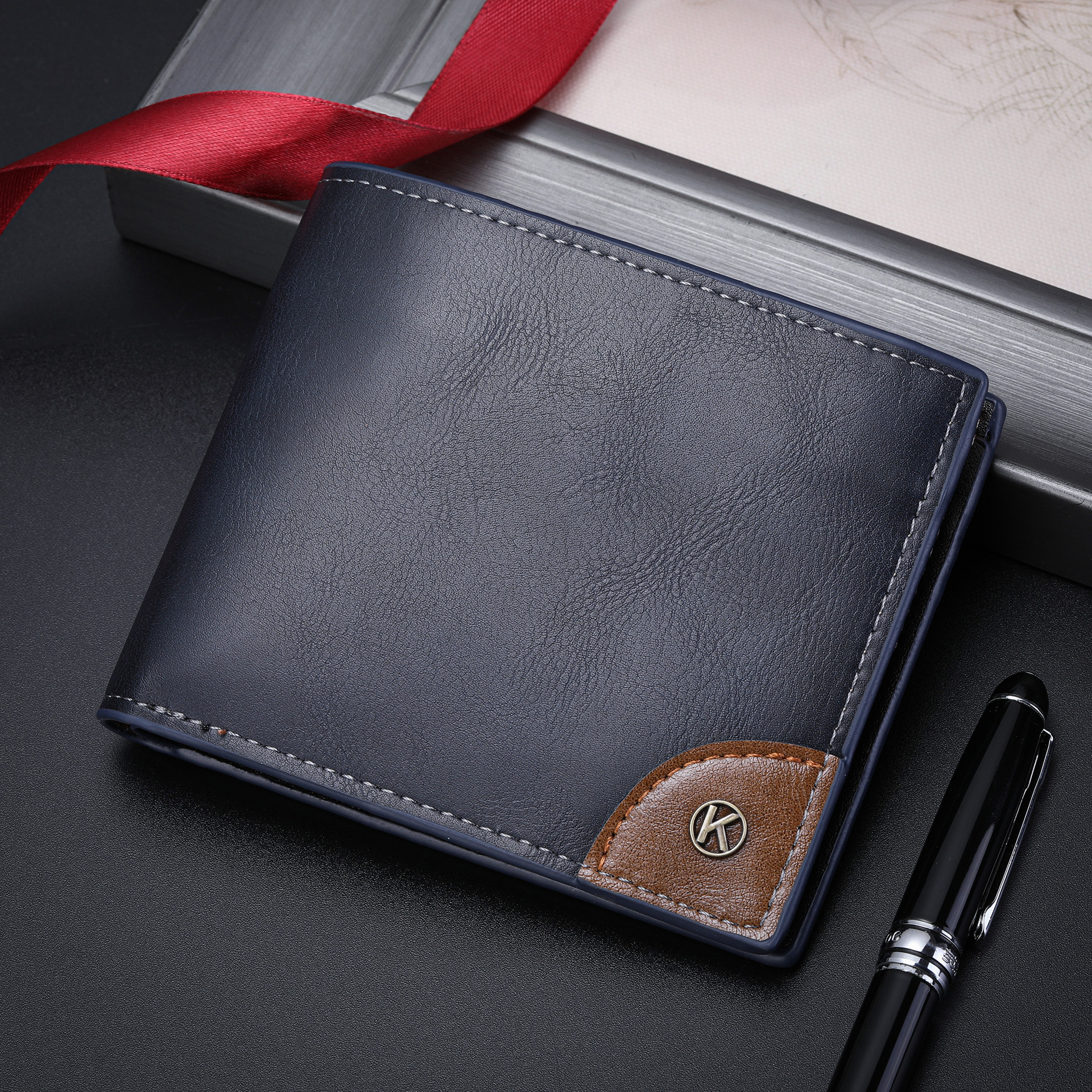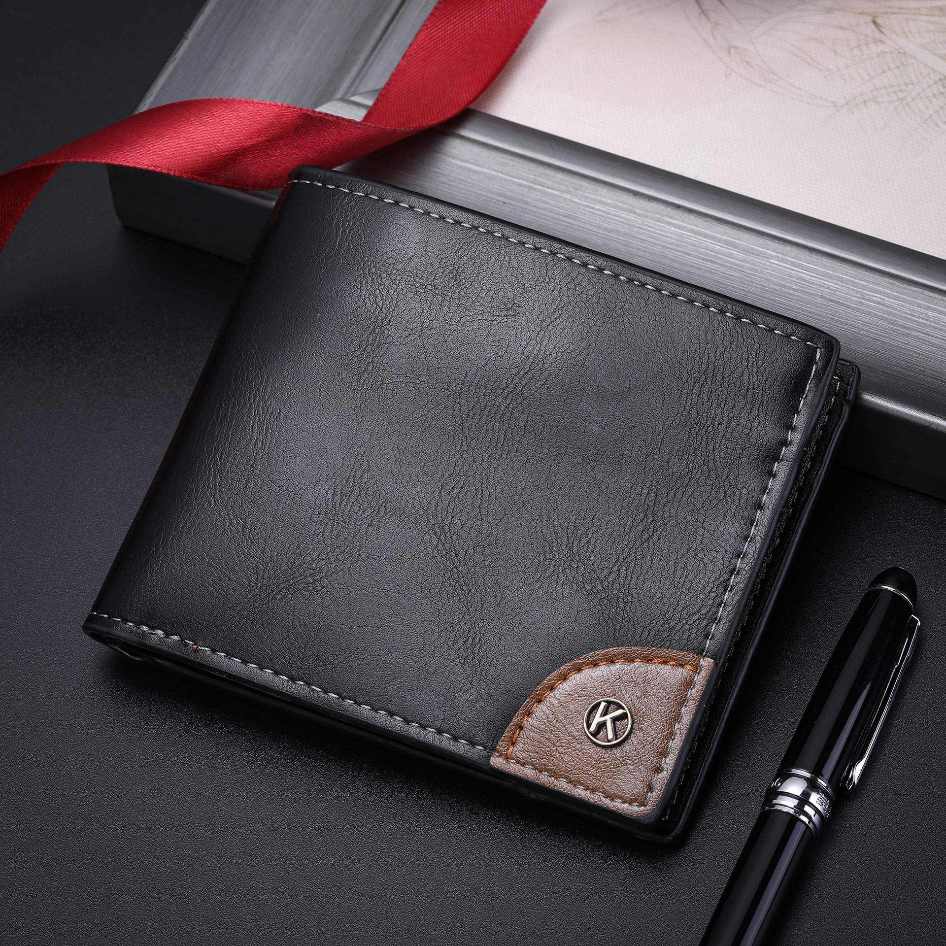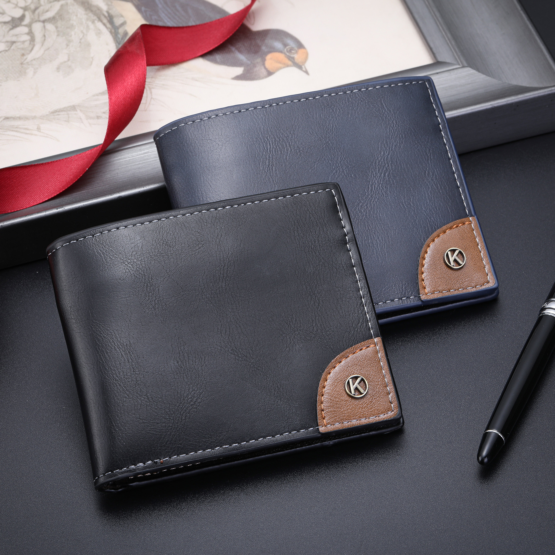 2024国境を越えた新しい男性の短い財布欧米のレトロなファッションは学生の多カードの3割引の小銭入れをつなぎ合わせます。