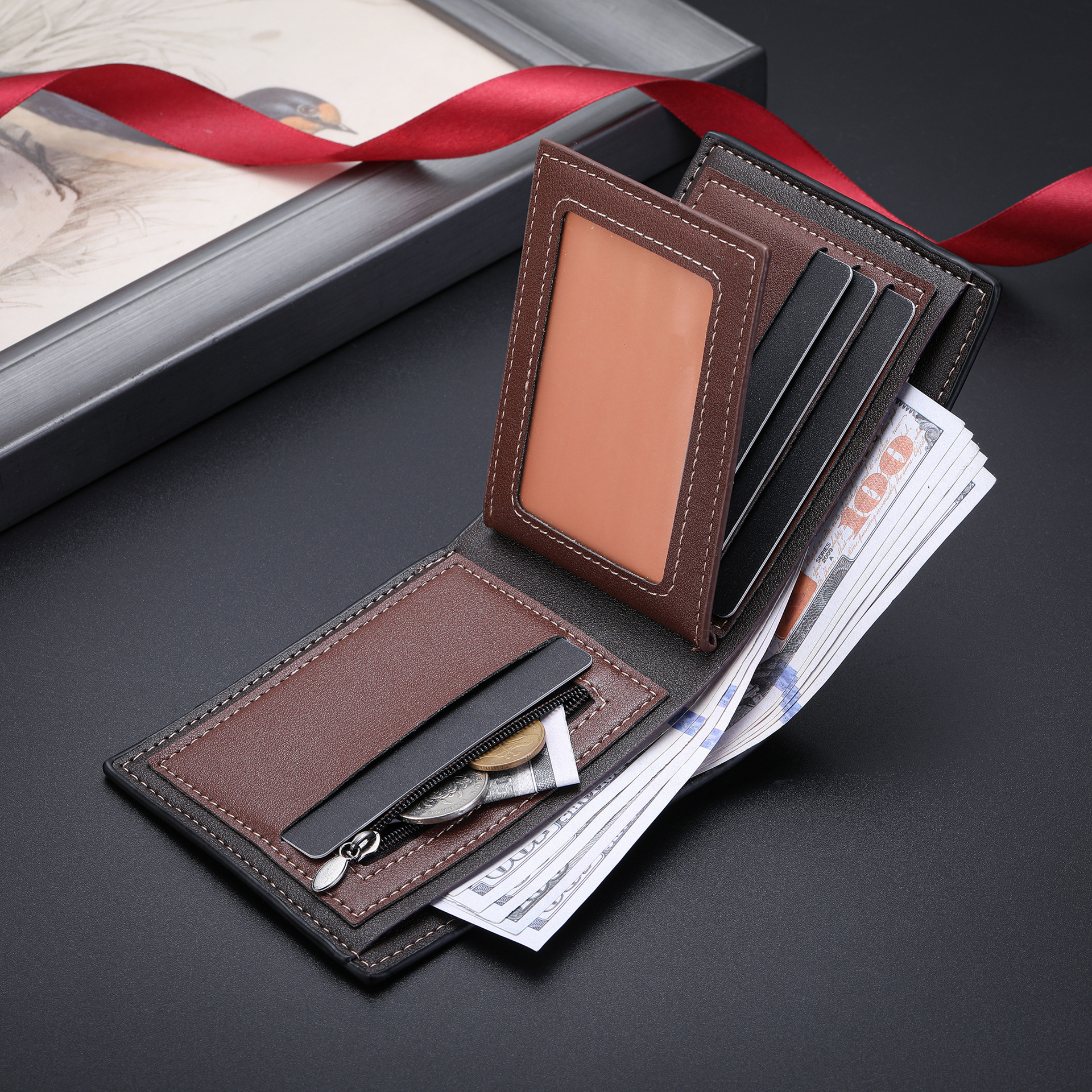新しいメンズショートウォレット、カジュアル、超薄型多機能ウォレット、マルチカードスロット、携帯電話小銭入れ、大容量