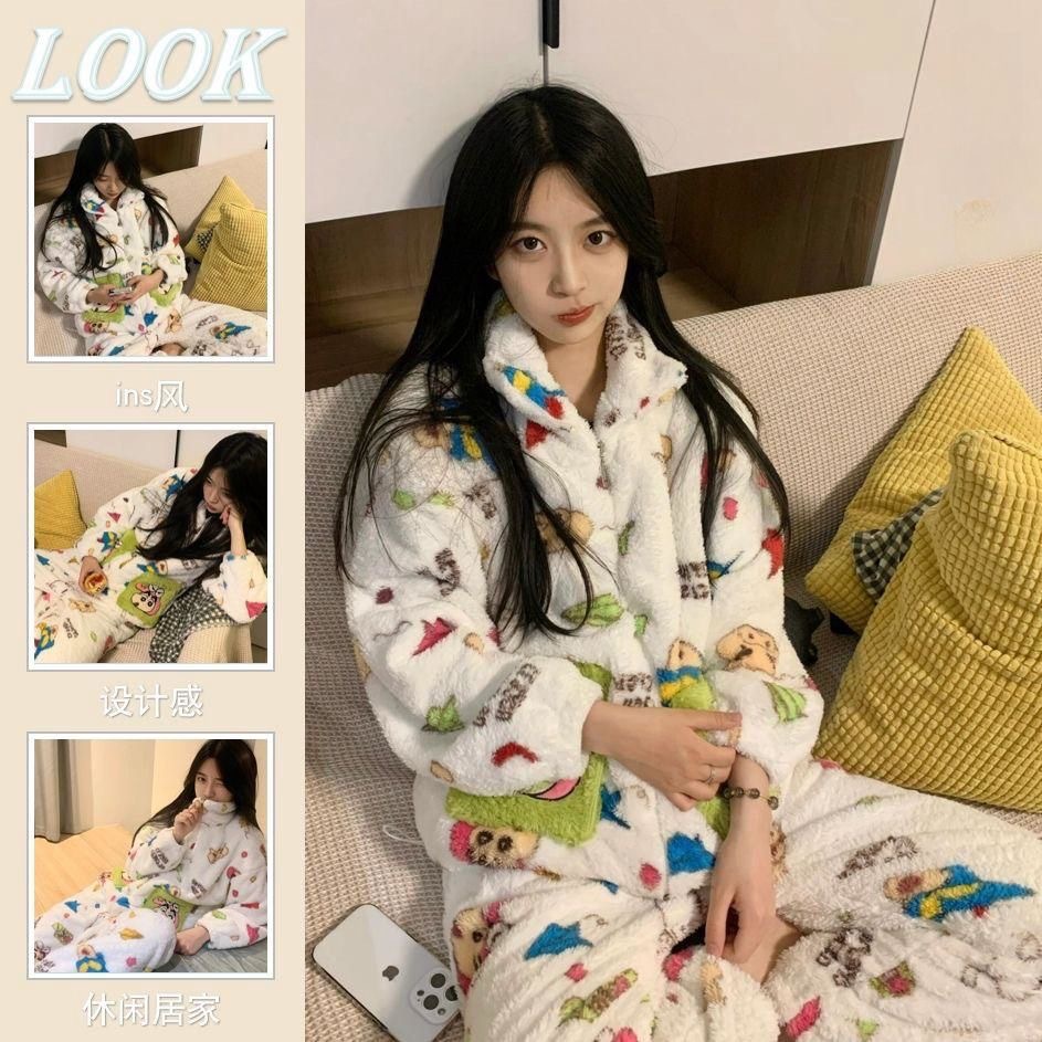 外国貿易の国境を越えたネット赤は韓国版ins冬のサンゴのベルベットのセットのパジャマの女性が快適に女性の家の服を厚くすることを生放送した