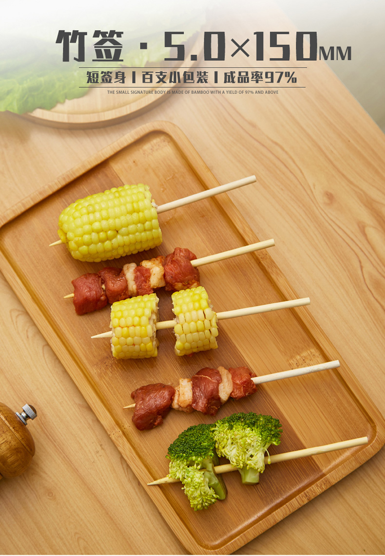 使い捨てのトウモロコシの串は竹の署名を焼きます。