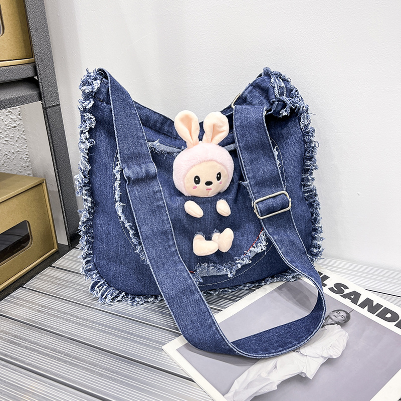 新しい韓国のファッションのクールなデニムのカバンの文芸のレジャーのショルダーバッグの学生の大容量の補習袋のかわいいキャンバスのカバン