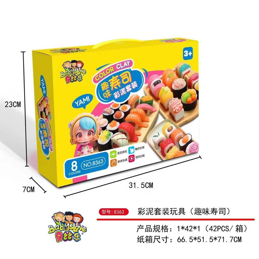 新商品の寿司のハンバーガーのテイクアウトの色の泥のセットのゴムの泥のDIYの手作りの鋳型の箱入りの女の子の益智は遊びます。