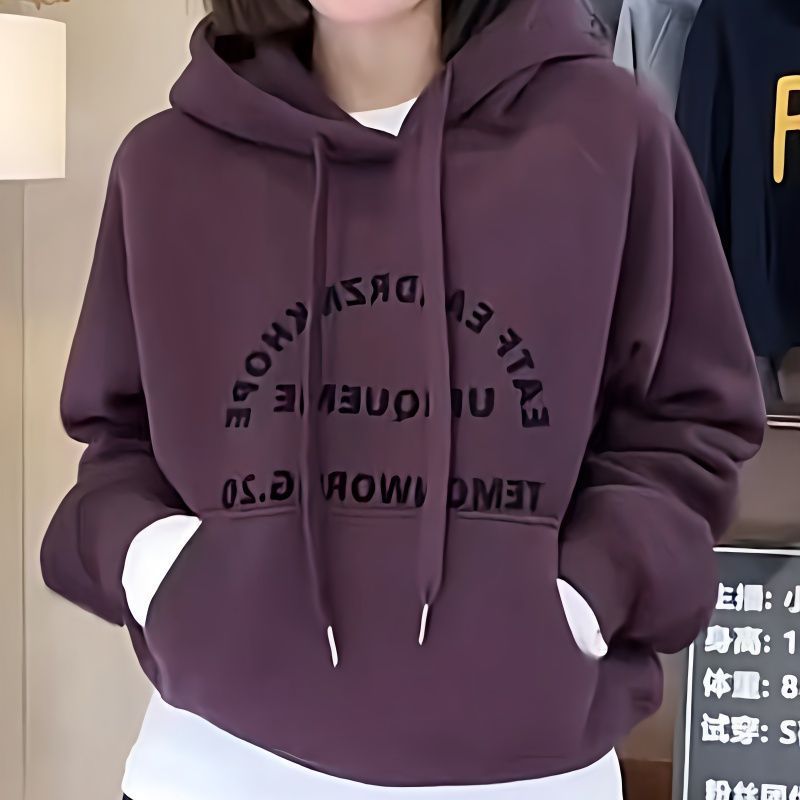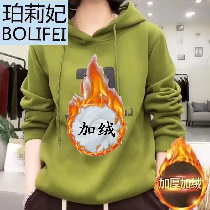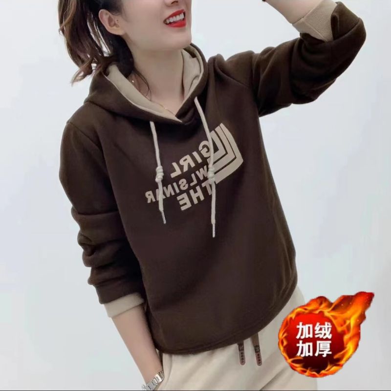 【30-33】加绒加厚连帽卫衣女2024秋冬休闲百搭减龄字母袋鼠兜上