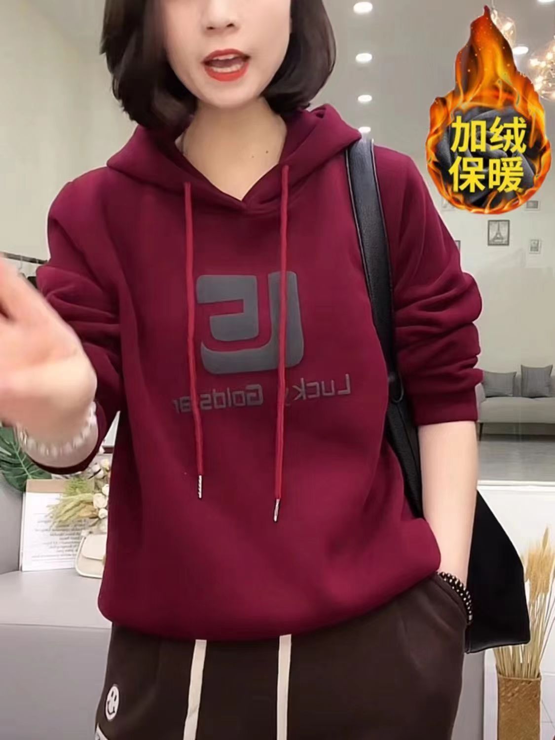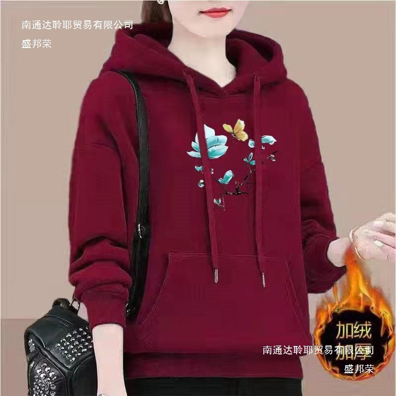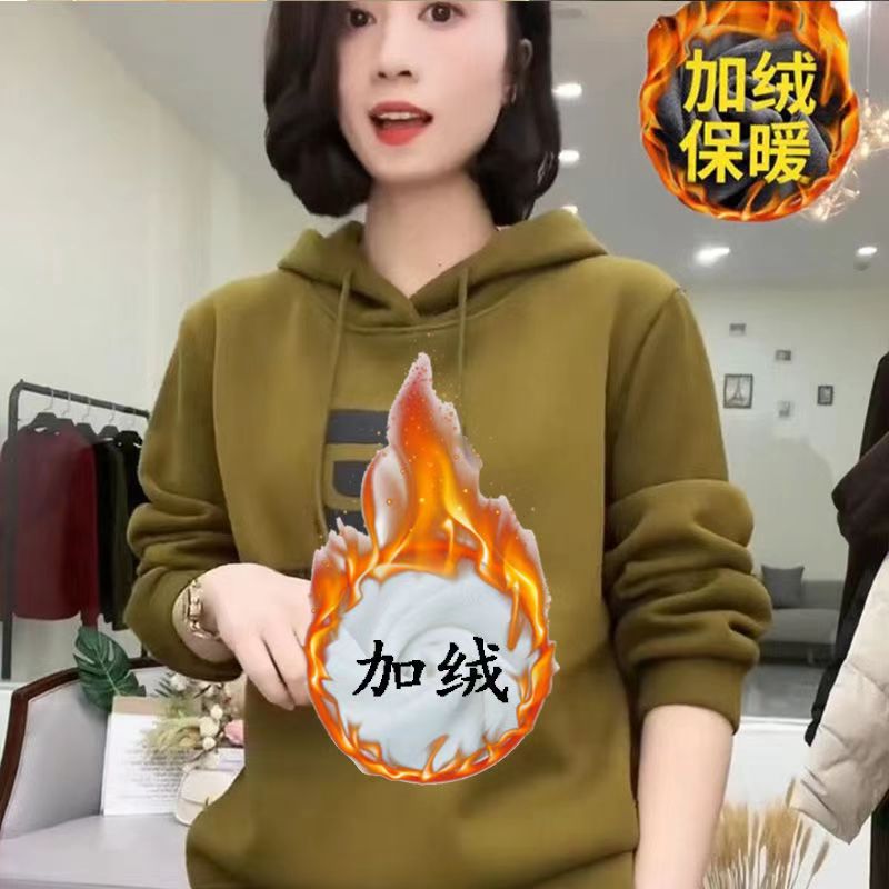 秋冬卫衣女加绒加厚中老年妈妈装减龄显瘦百搭连帽外套长袖卫繁星