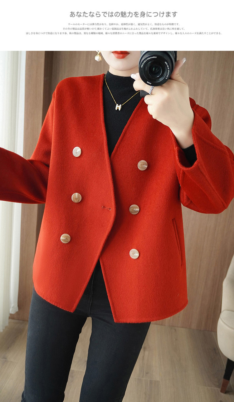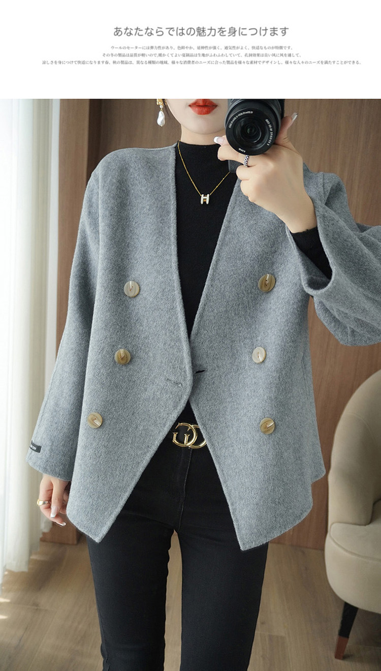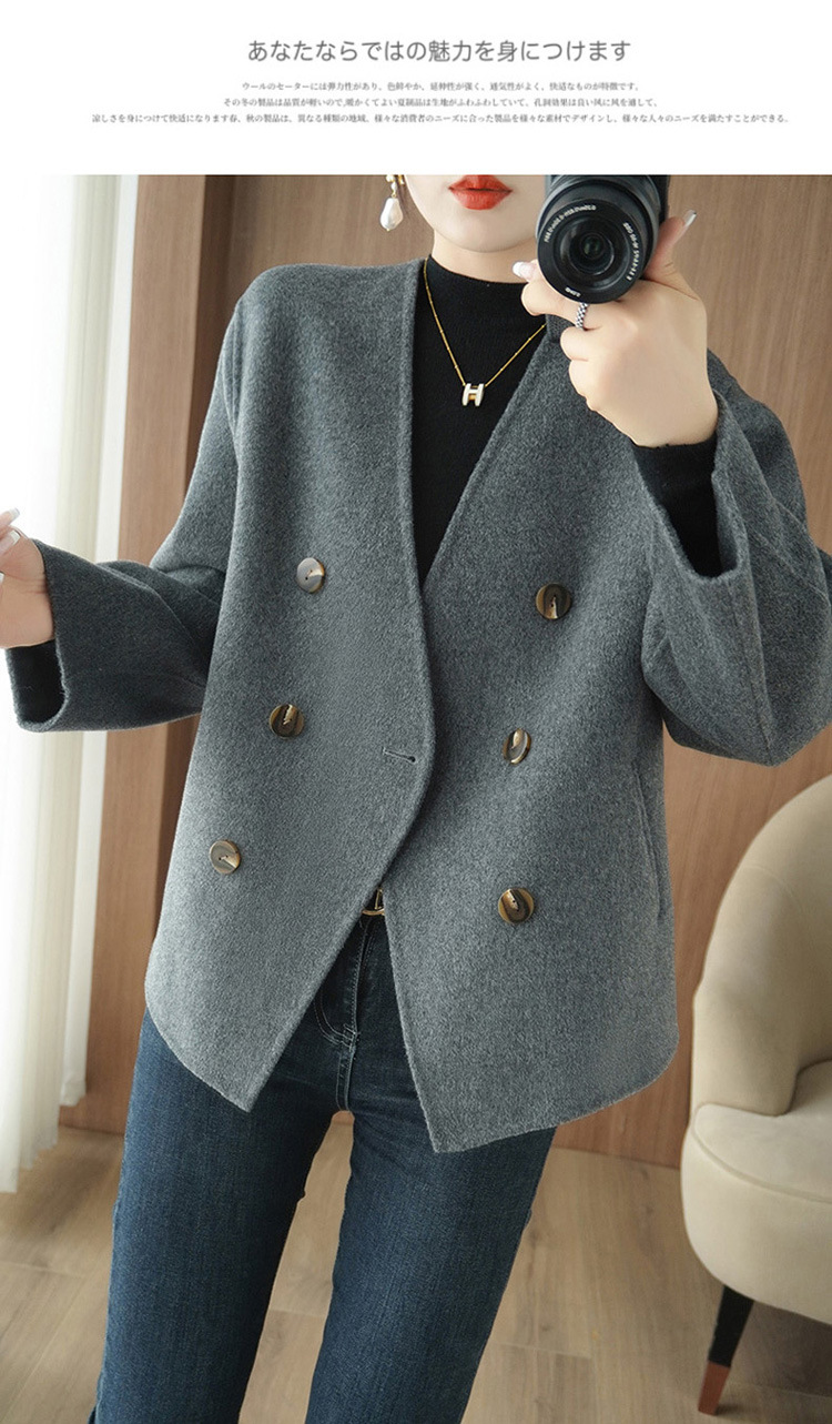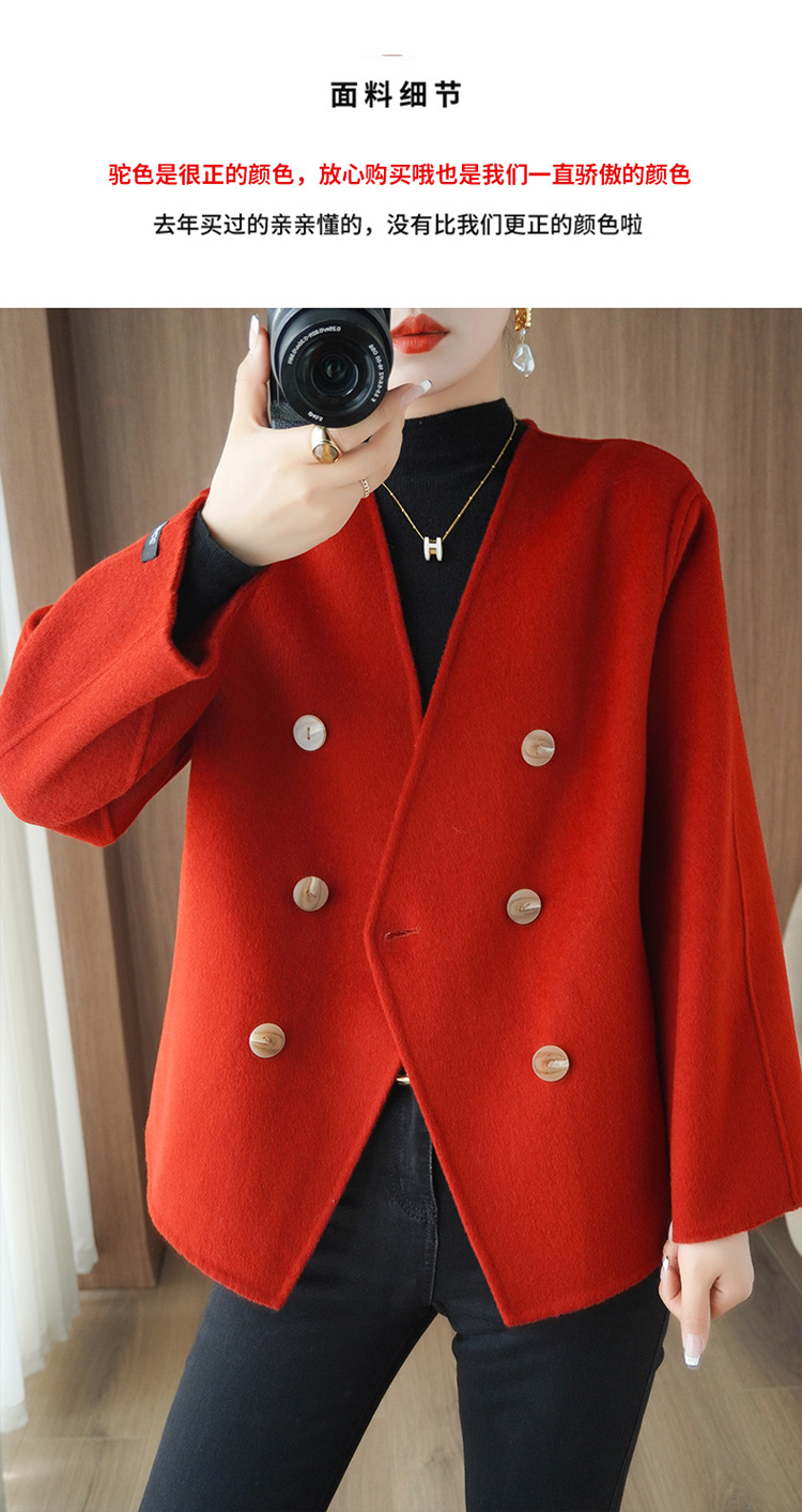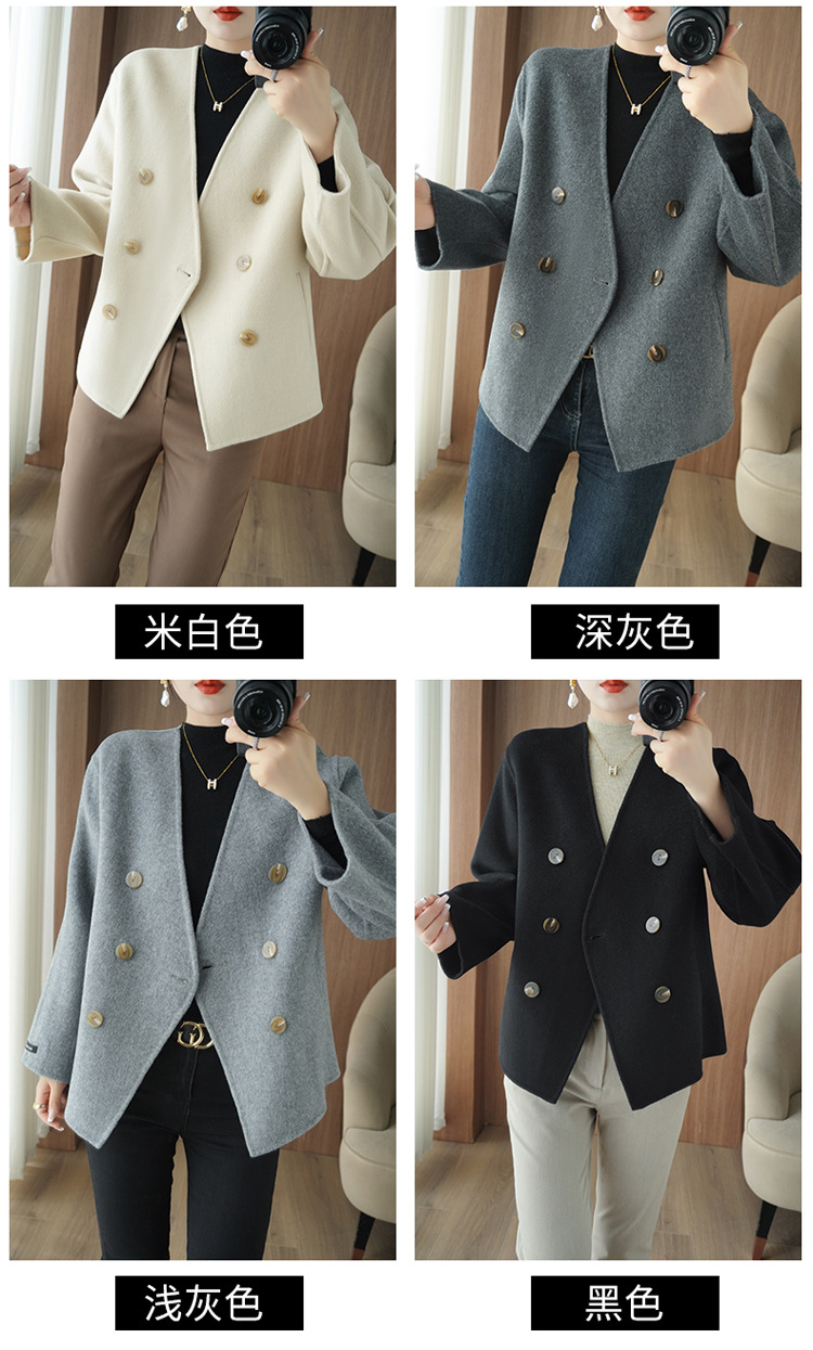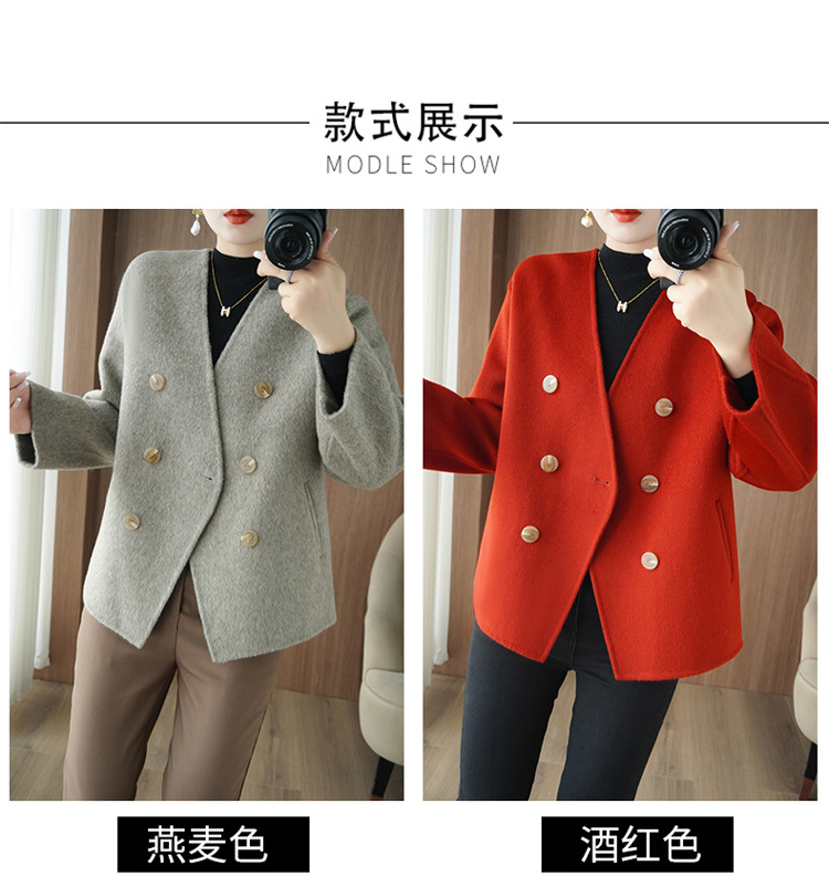 24種類の小香風vネック両面ウールコート女性の短い気質英倫風ゆるい厚手のカシミヤコート